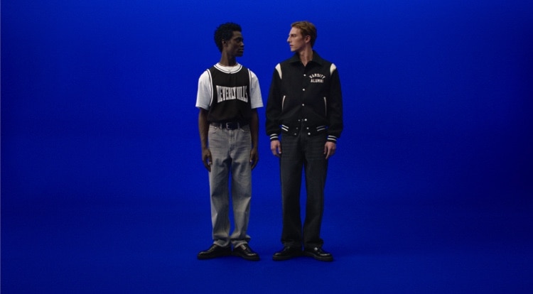 Creează combinația perfectă de preppy și confort cu blugi largi și o jachetă varsity.