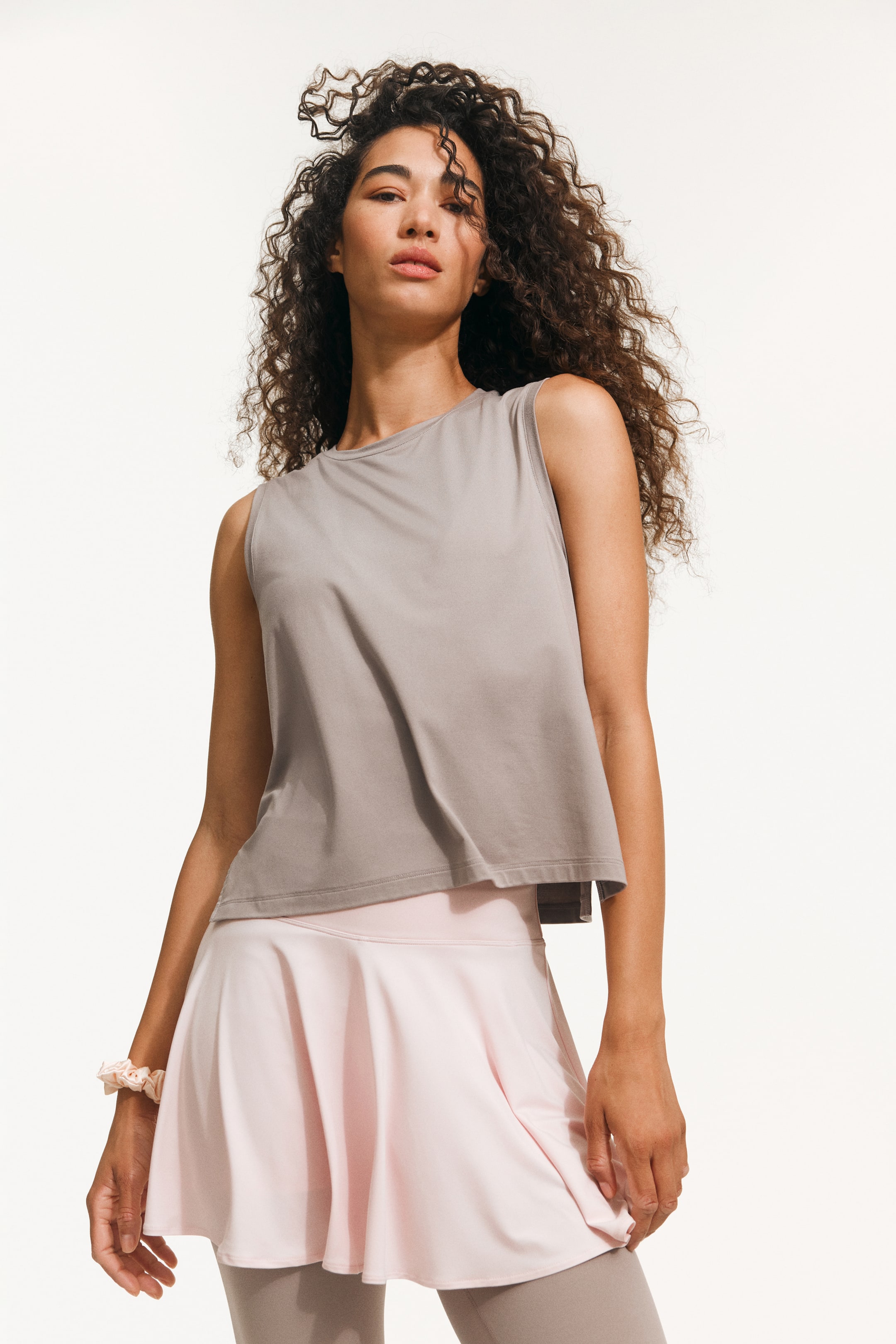 Krátke športové tielko hranatého strihu z funkčnej látky vyrobenej s použitím technológie DryMove™, ktorá odvádza vlhkosť z vašej kože a pri pohybe zabezpečí, aby ste sa cítili príjemne a v suchu. Voľný strih, okrúhly výstrih a rovný spodný lem s rozparkami po bokoch.