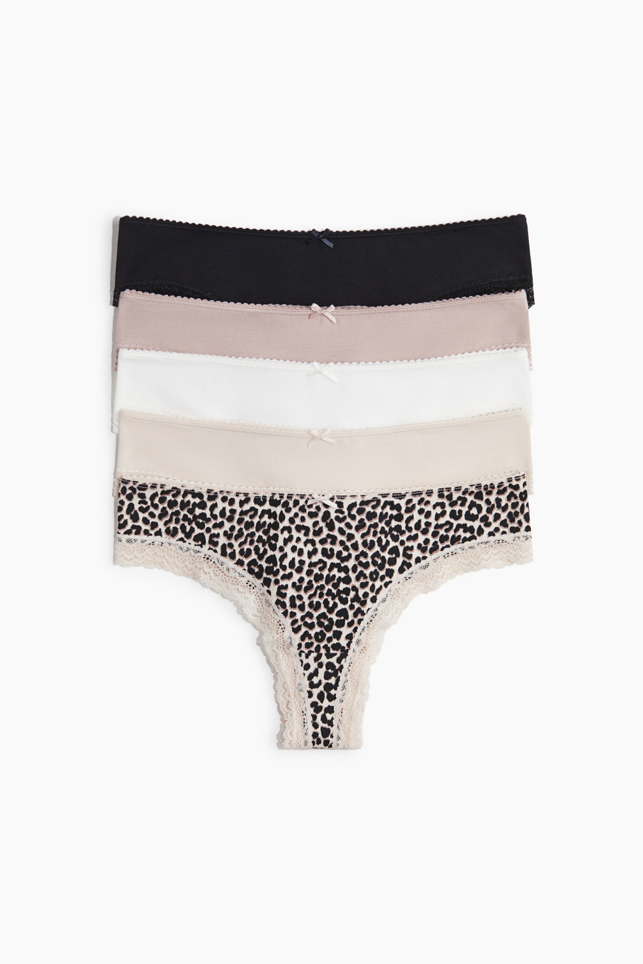 Gaćice brazilke s čipkanim porubom. Niski struk i postava na preponama; visoko sečene pozadi.