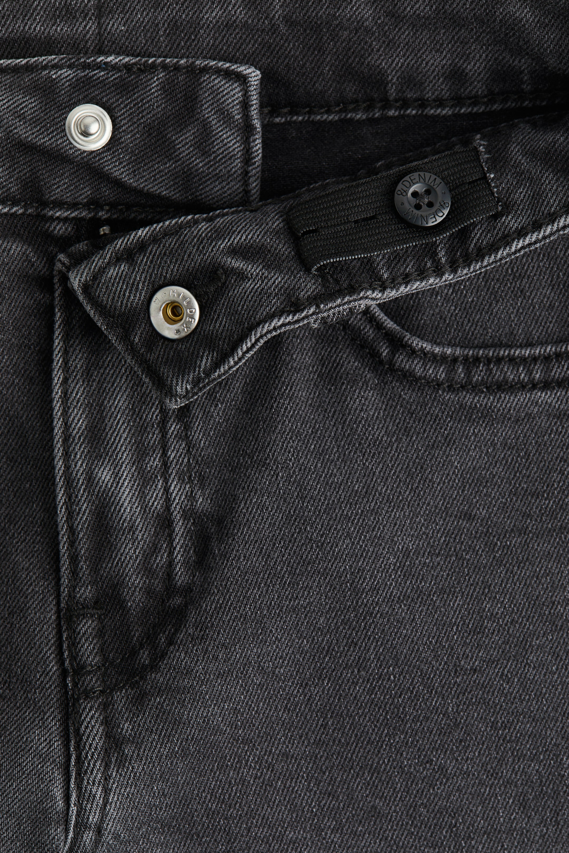 Farmerke sa pet džepova od mekog, rastegljivog pamučnog teksasa. Širokog kroja celom dužinom. Podesiv, rastegljiv struk sa šlicem s rajsferšlusom i dugmetom.