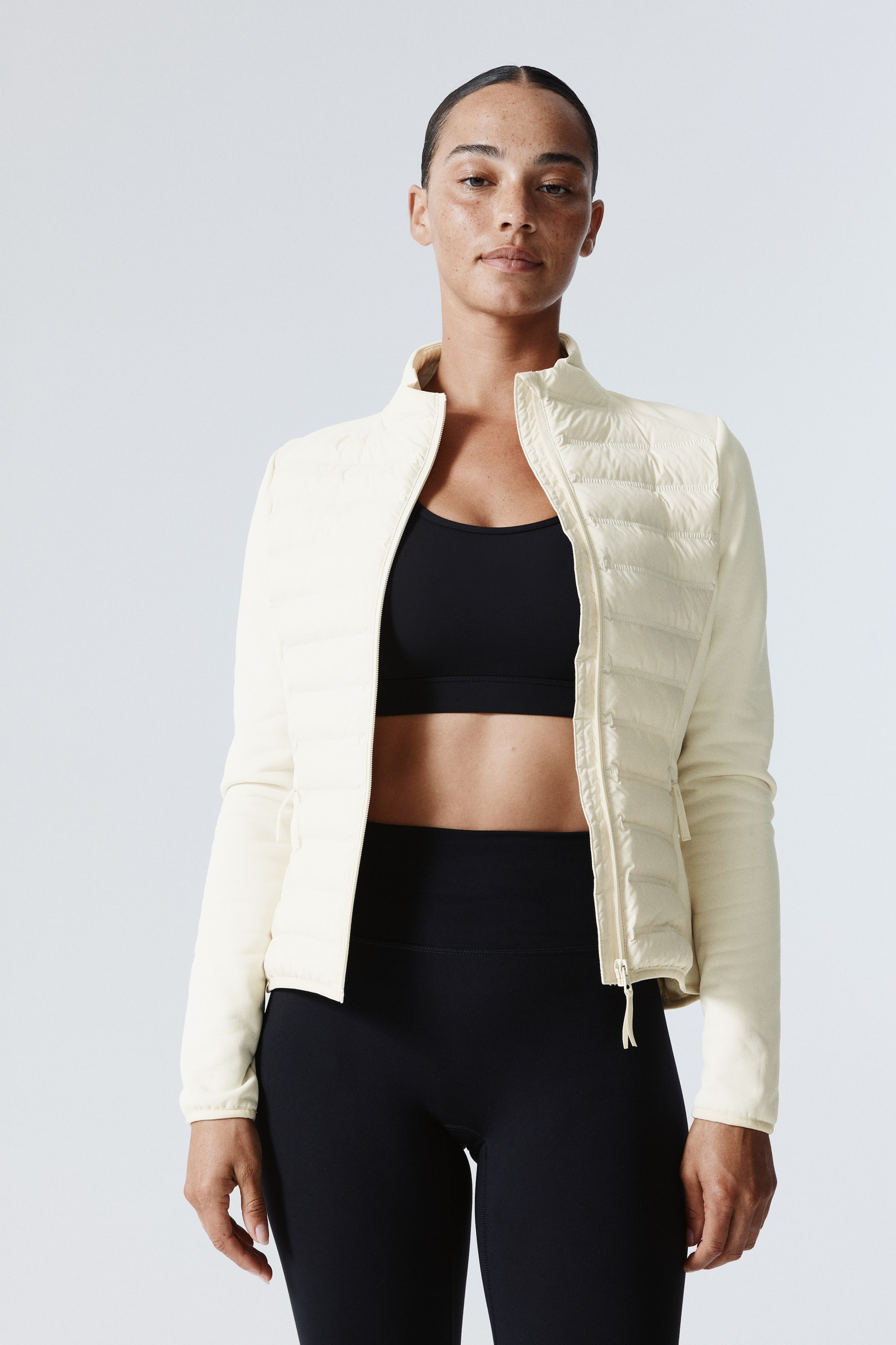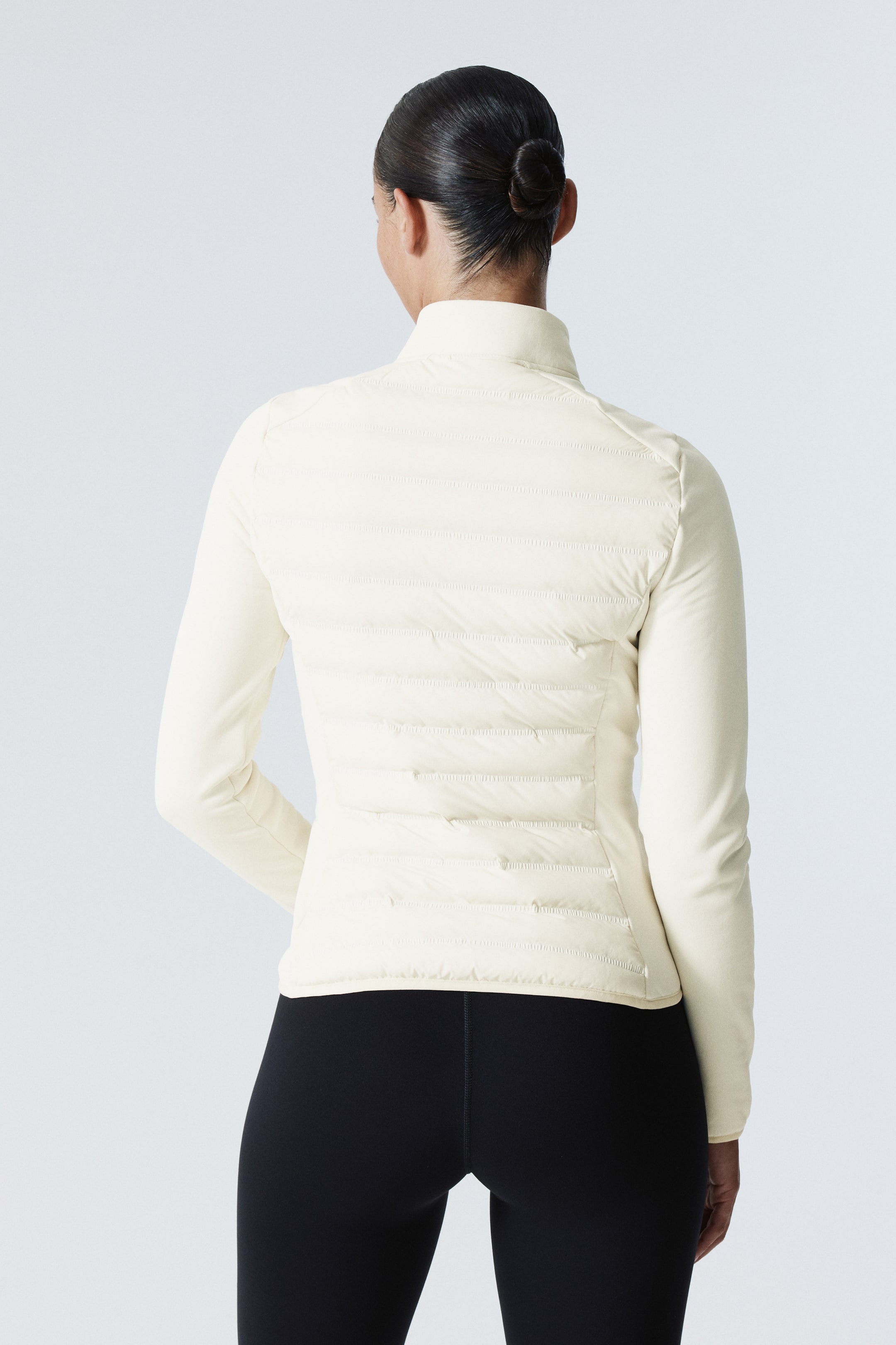 Hibridna jakna od rastegljivog žerseja sa punjenim, prošivenim umecima od funkcionalnog tkanog materijala izrađenog pomoću tehnologije ThermoMove™ kako bi vam bilo toplo i kada padne temperatura. Standardnog kroja s uspravnom kragnom, rajsferšlusom napred sa štitnikom za bradu koji sprečava žuljanje, bočnim džepovima s rajsferšlusom i džepovima s unutrašnje strane. Ušiveni lastiš na krajevima rukava i donjem rubu.