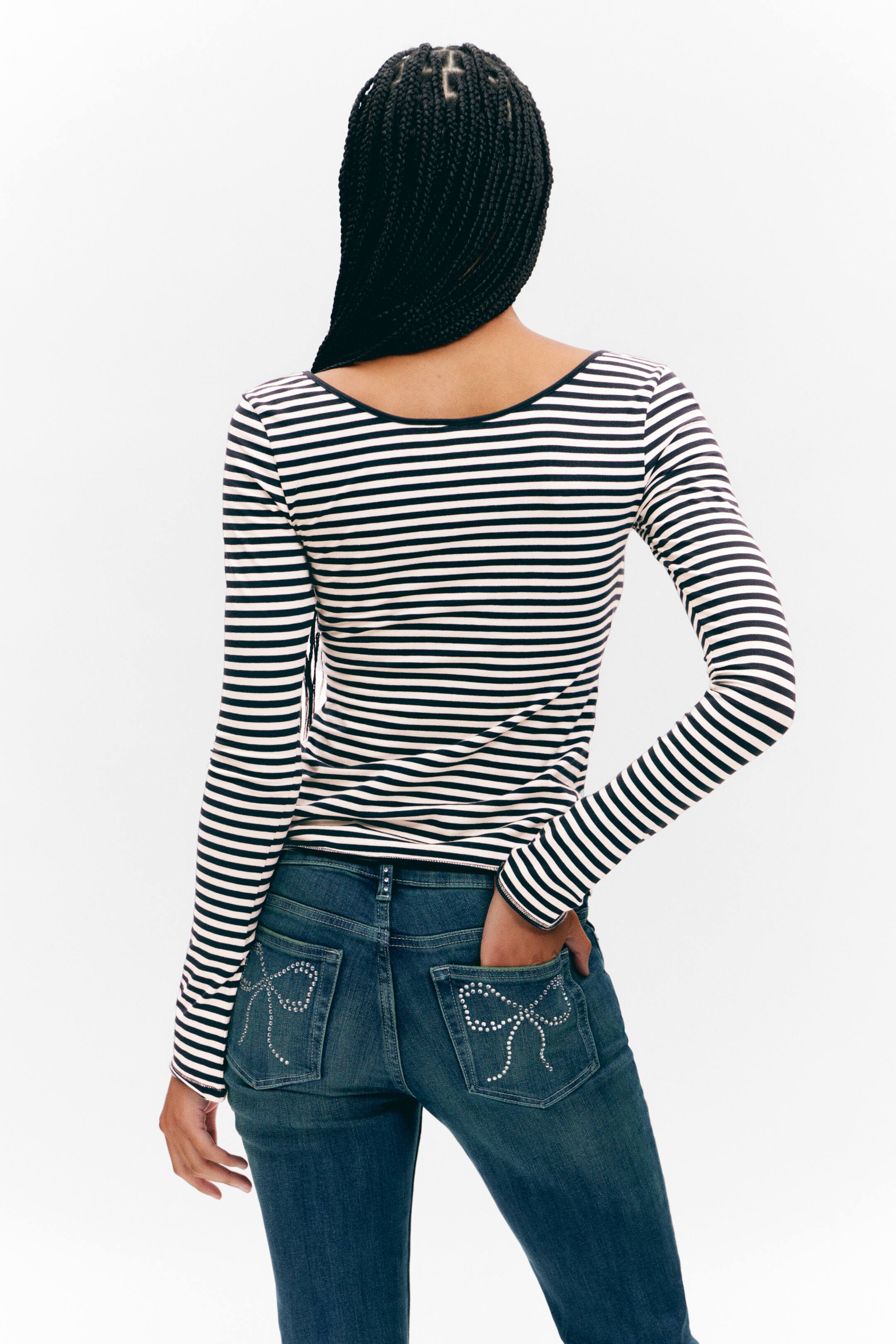 En långärmad topp med smal silhuett och rundad halsringning. Tillverkad av mjuk, stretchig bomullsjersey, designad för en åtsittande passform och avslutad med subtila babylock-fållar.
