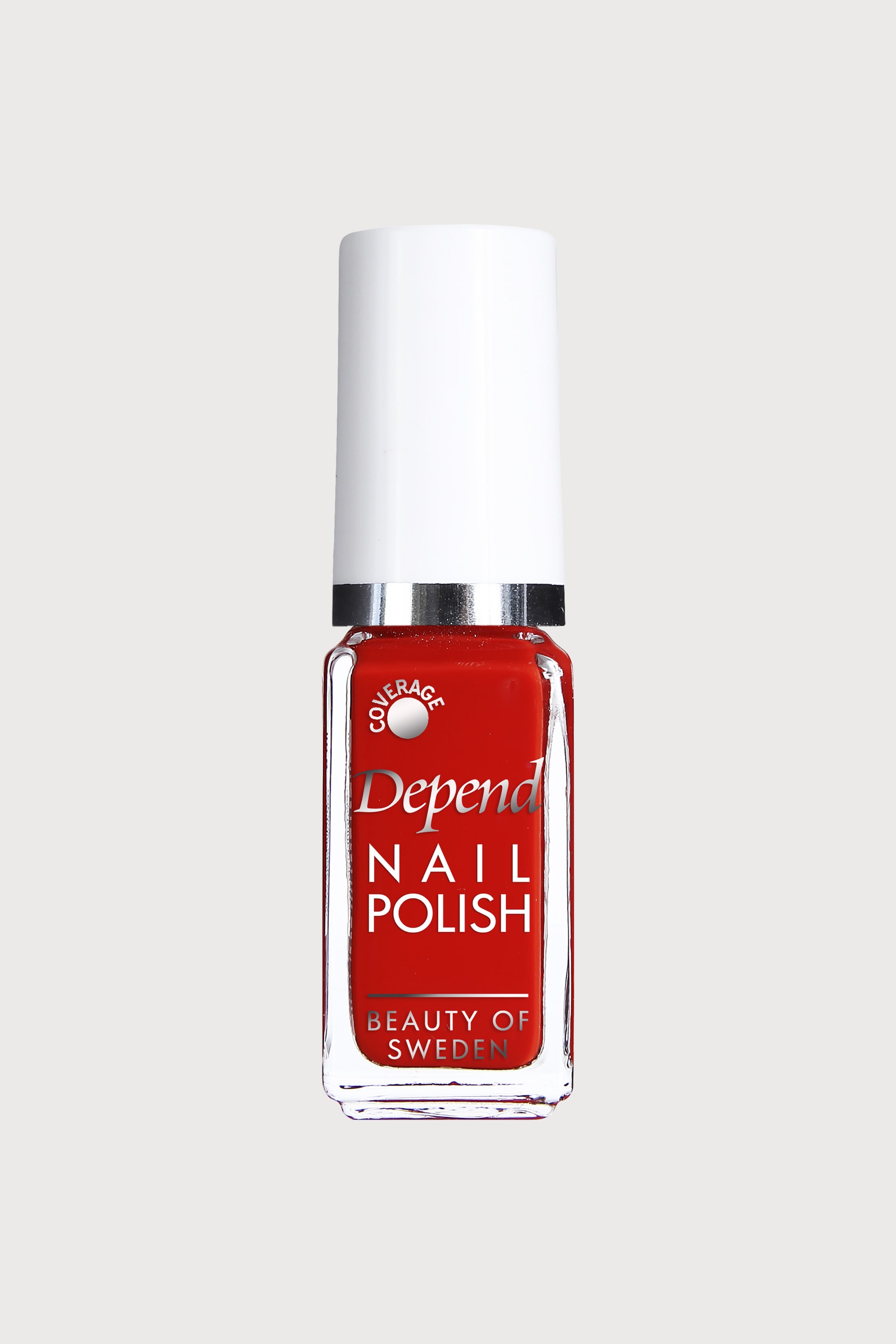 Depend Minilack har en perfekt storlek på 5 ml och är lätt att applicera med den specialdesignade penseln som är platt och klippt med rundad kant och därmed extra följsam. Flaskan är försedd med symboler som visar lackets täckningsgrad; täckande, halvtäckande eller transparent. Kollektionerna uppdateras regelbundet med säsongens trendigaste färger. En riktig klassiker; liten, trendig och så prisvärd att du kan hänge dig med ett för varje outfit i garderoben.