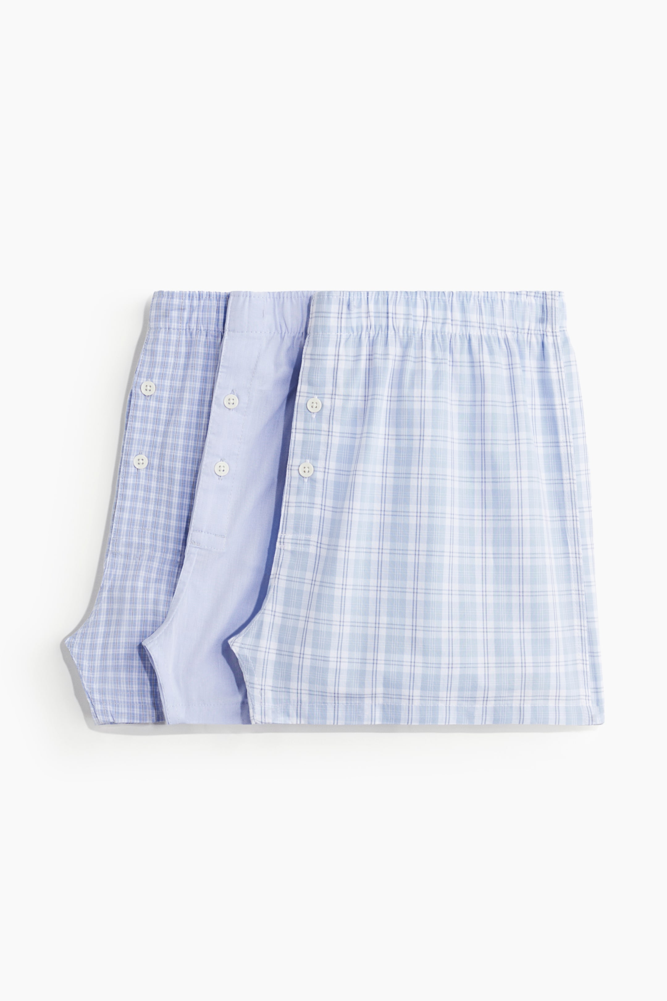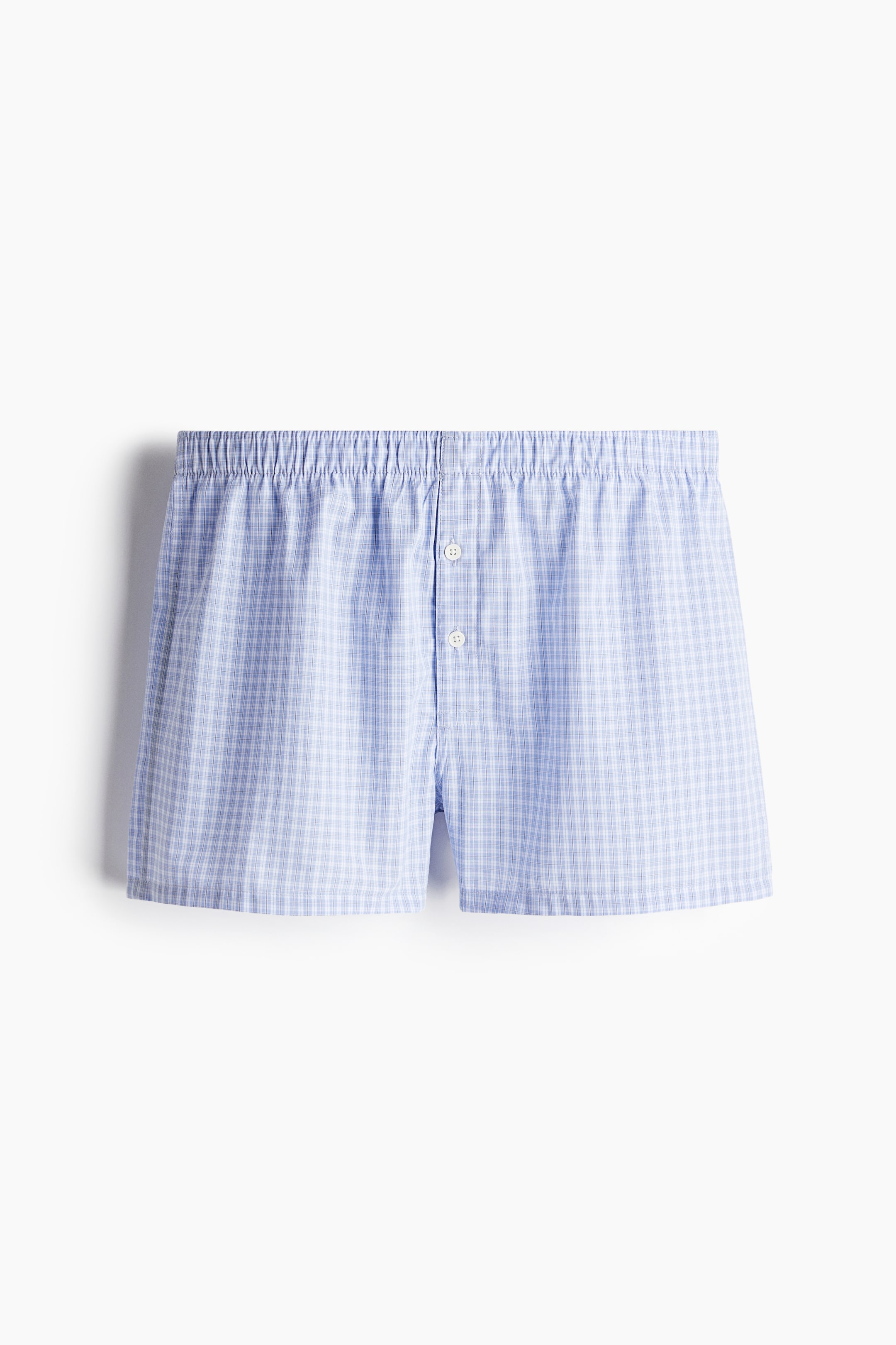 Boxershorts i vävd bomullskvalitet med resår i midjan och långa ben. Knappgylf.