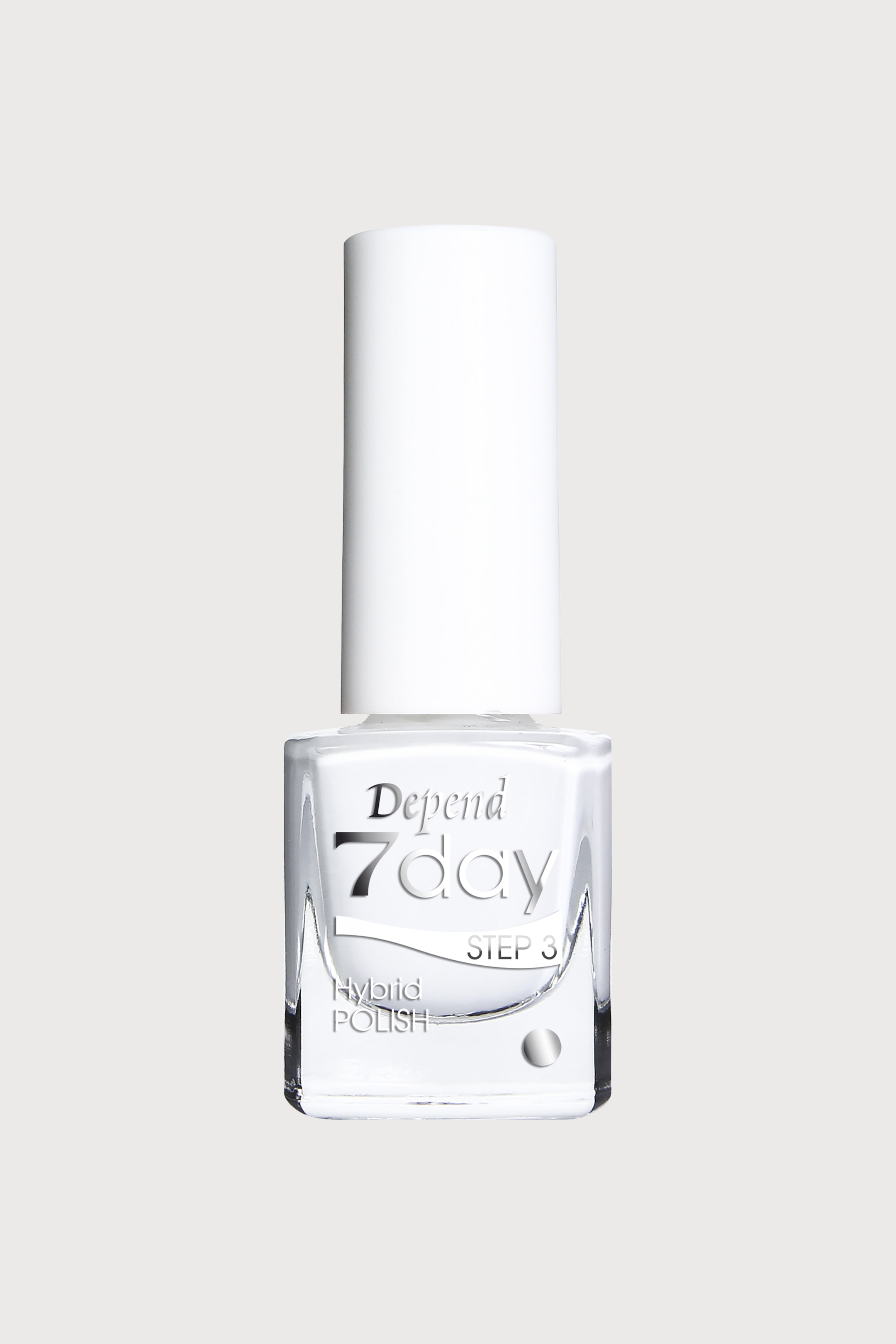 Depend 7day är lacksystemet för dig som söker ett nagellack med superglans, högklassig hållbarhet och ”gel feeling”. Denna hybridformula håller i upp till en vecka, är lätt att applicera och du tar enkelt bort lacket med Depend nagellackremover. Ingen LED-/UV-lampa behövs, utan lacksystemet härdar i normalt dags-/lampljus eller i ljuset av mobiltelefonen. Använd i kombination med 7day Baslack och 7day Toplack.