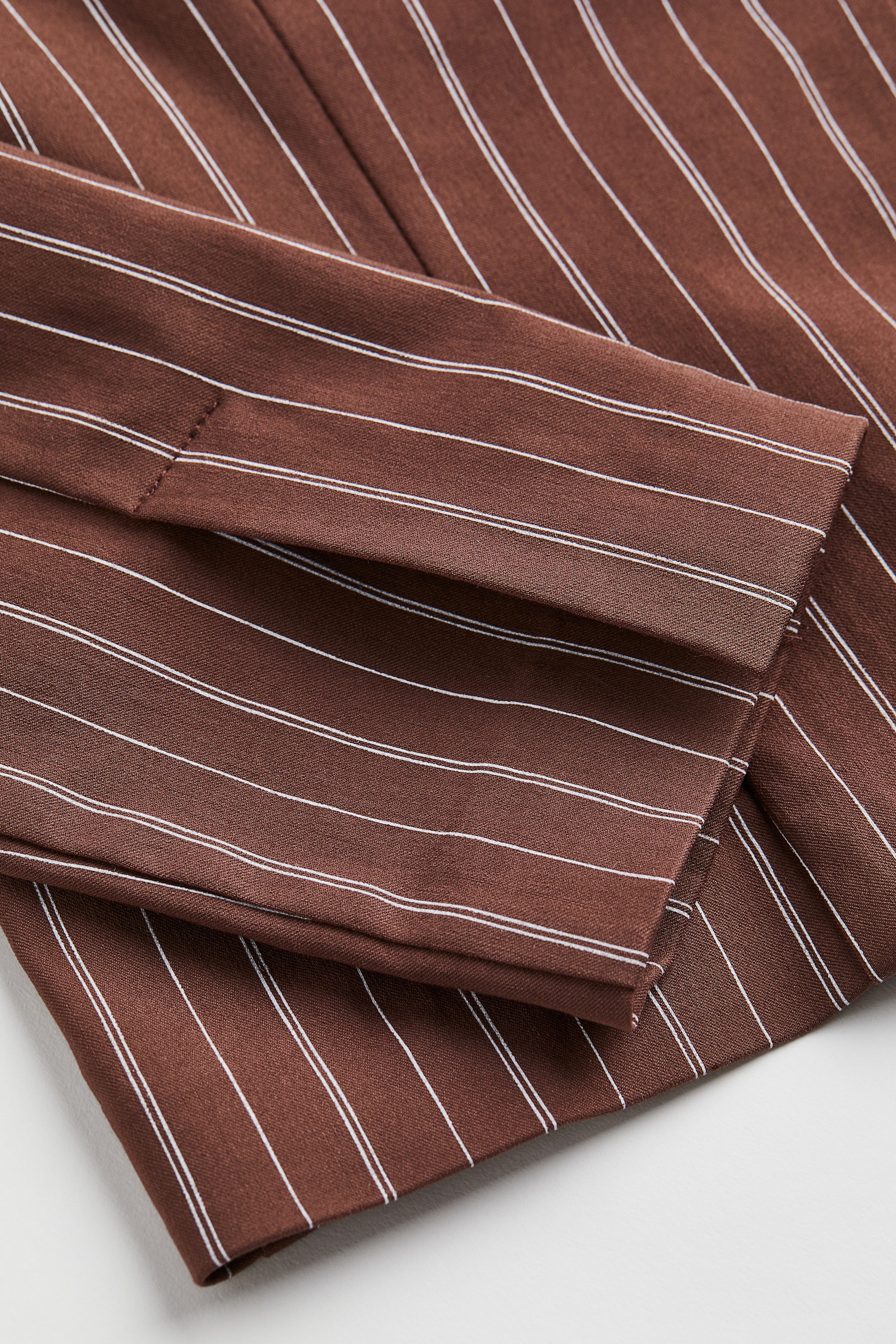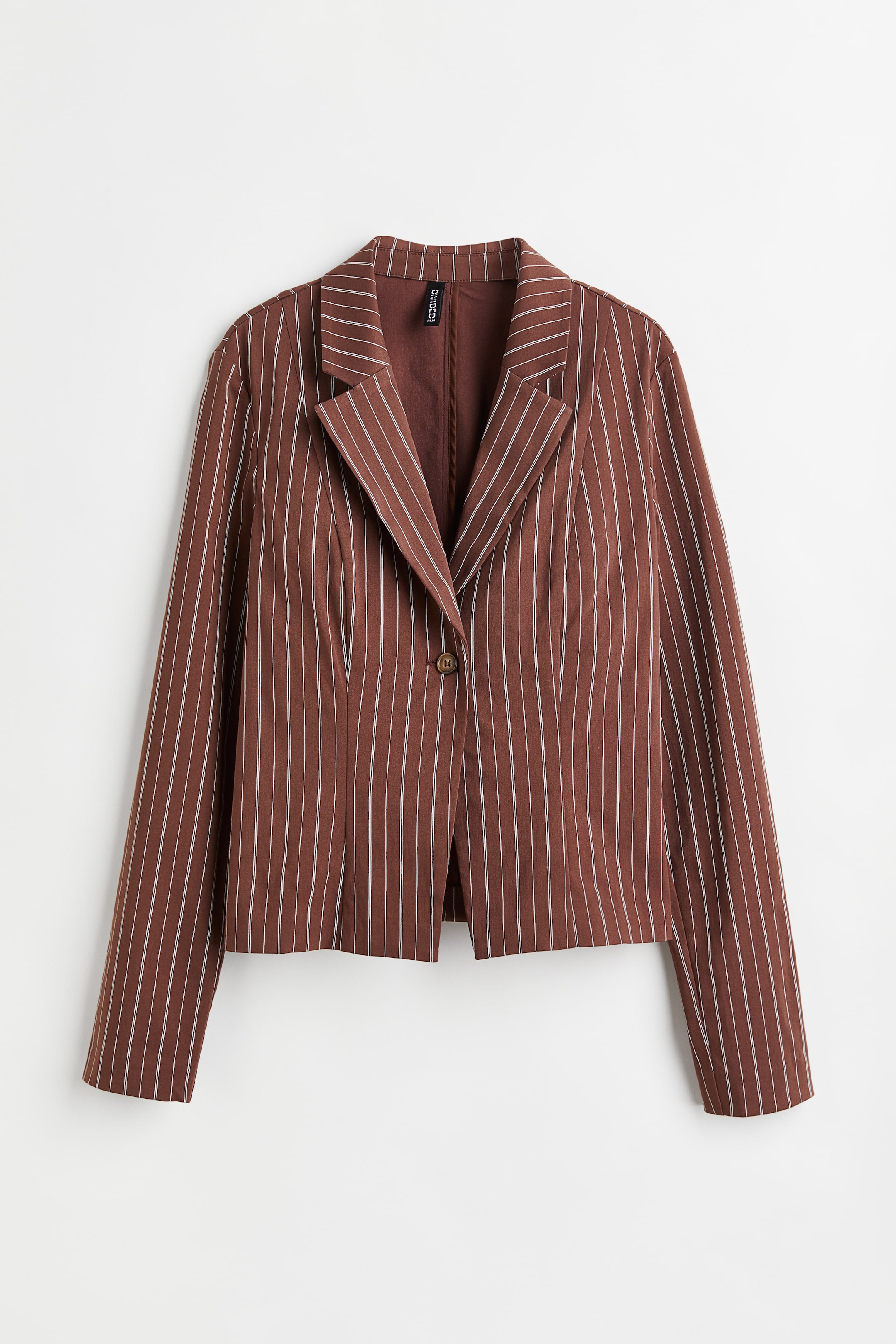 En kort, enkelknäppt kavaj i twill av viskosblandning. Kavajen har smal passform med trubbigt slag, knäppning med en knapp, lång ärm och slits vid ärmslut. Formande sömmar fram och bak. Ofodrad.