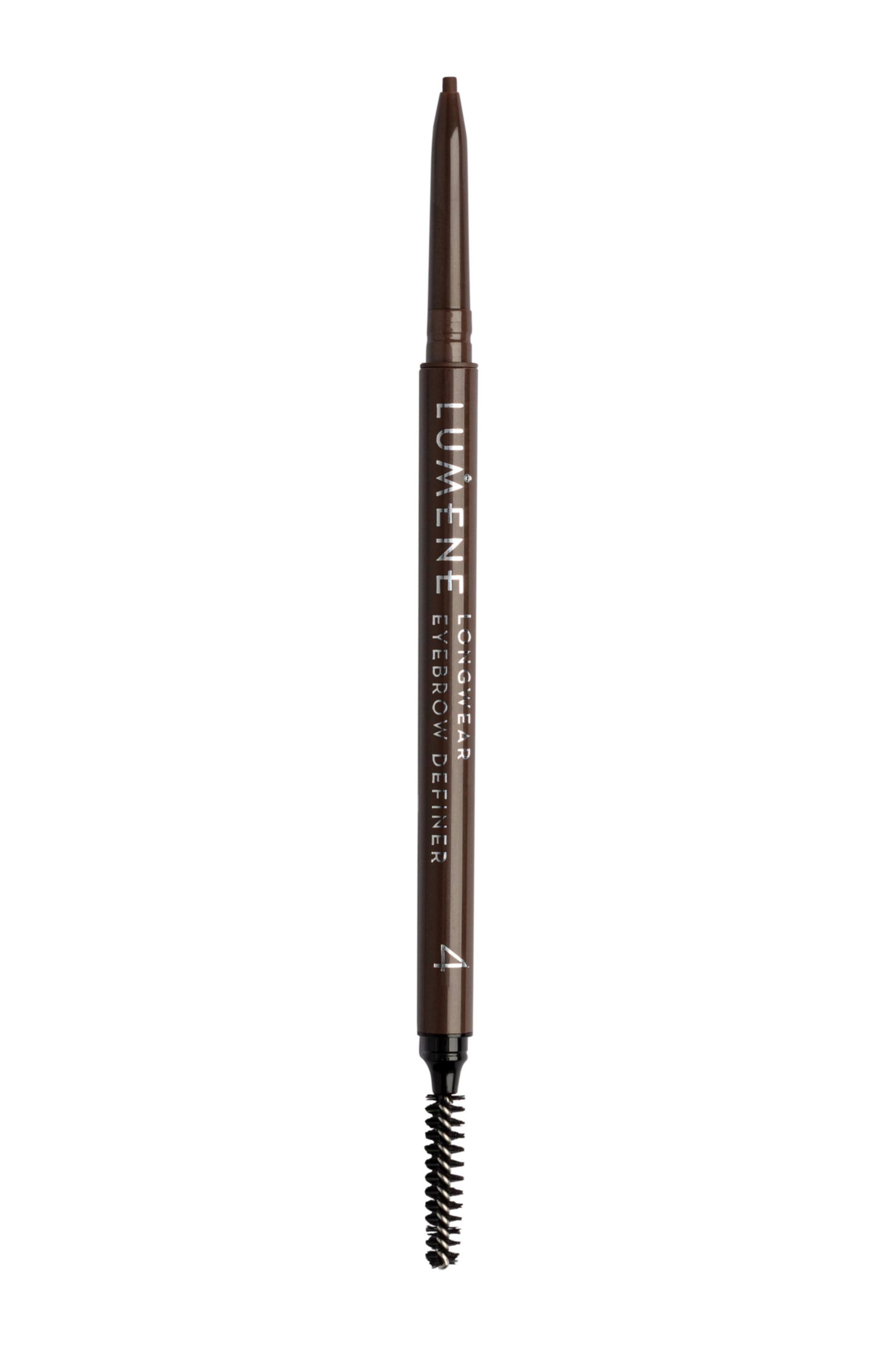 Longwear Eyebrow Definer is an automatic eyebrow pencil with an ultra-slim tip for beautiful, precisely shaped eyebrows. The small built-in spoolie brush is ideal for grooming and blending out the color.