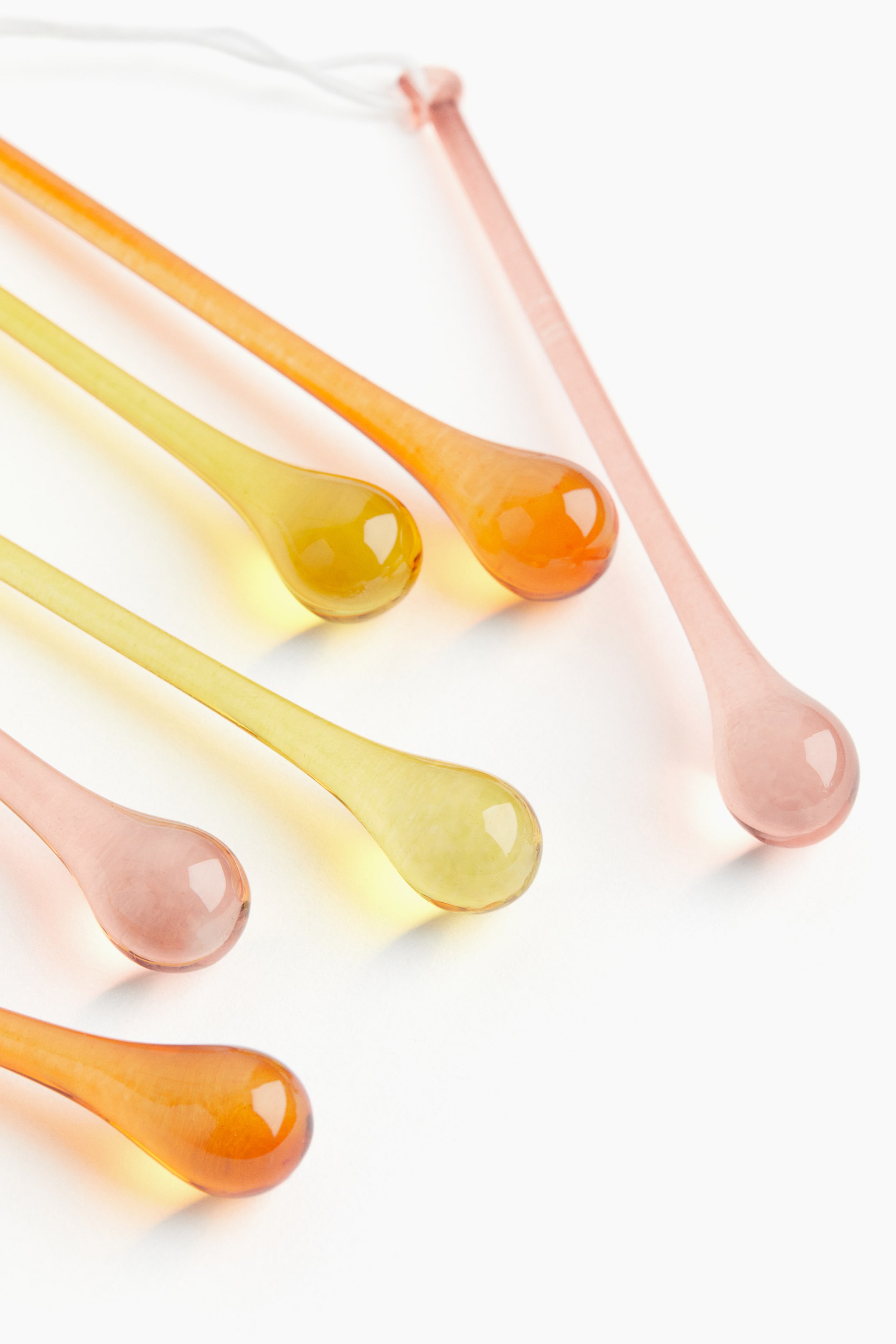 Droppformade påskdekorationer av överblivet glas med snöre upptill. Längd 8 cm.