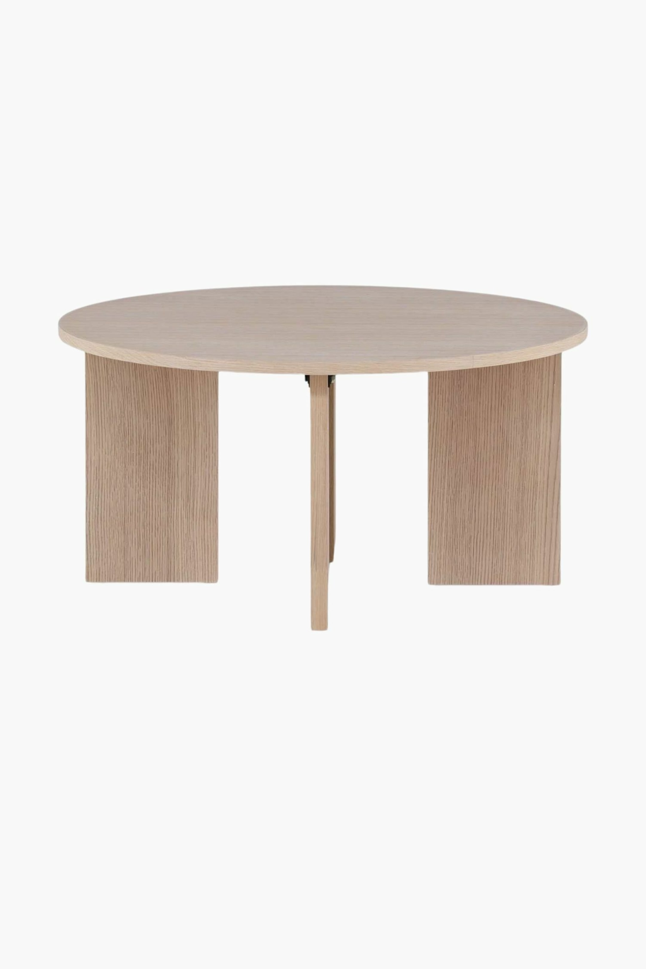 Akerön - Ett soffbord som är helt i linje med trenderna! Toppskivan är rund i vitputsat trä och underredet dekorativt med fyra bärande plankor i samma material. Den genomtänkta helhetsdesignen imponerar och skapar ett trivsamt blickfång framför soffgruppen. Dekorera med en fin vas och några ljusstakar för en hemtrevlig känsla och följ våra skötselråd för bästa tips om hur du får bordet att stå sig över tid! Mått: Ø80 H40