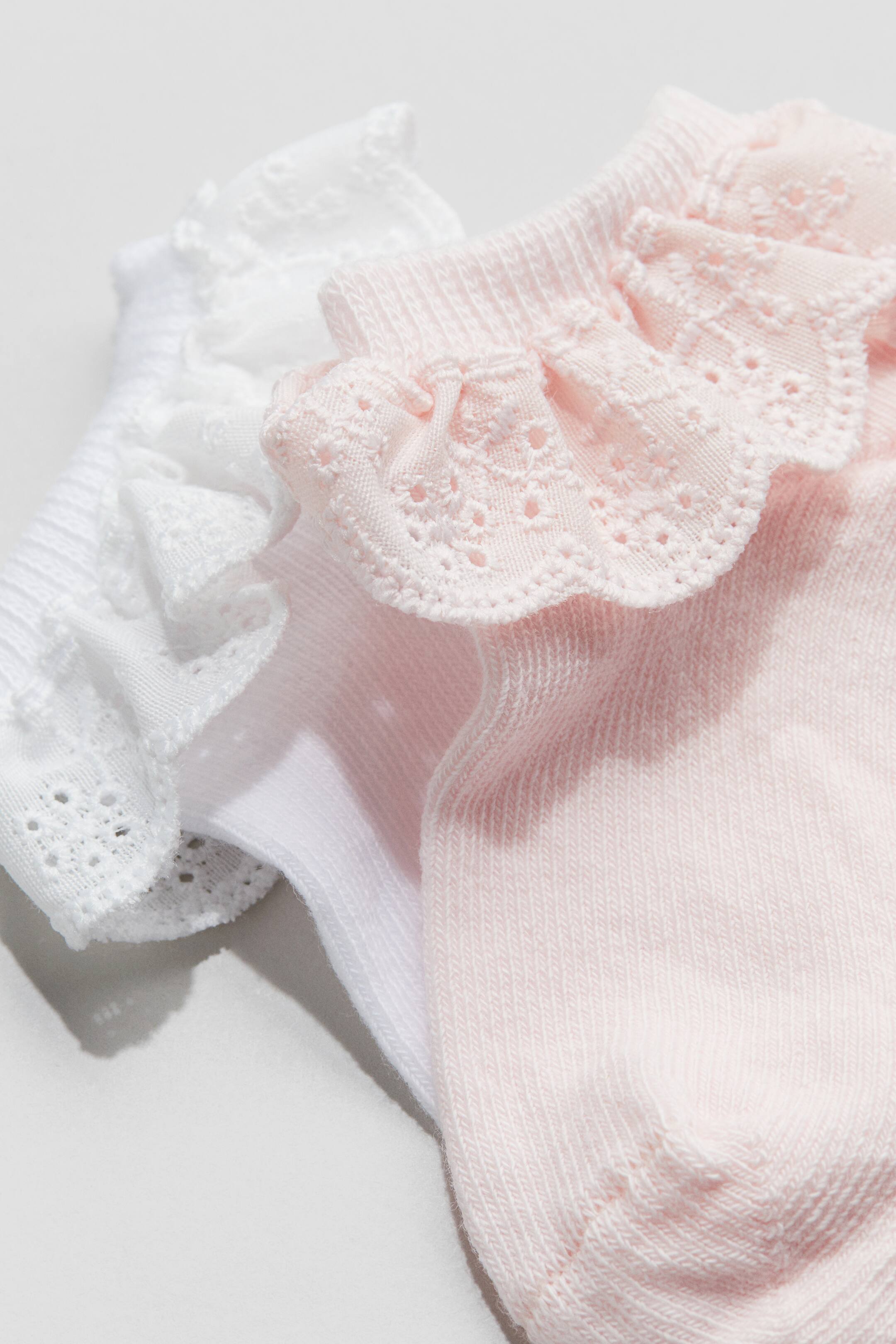 Finstickade strumpor utan skaft i mjuk bomullsblandning. Strumporna har resår upptill med dekorativa detaljer.