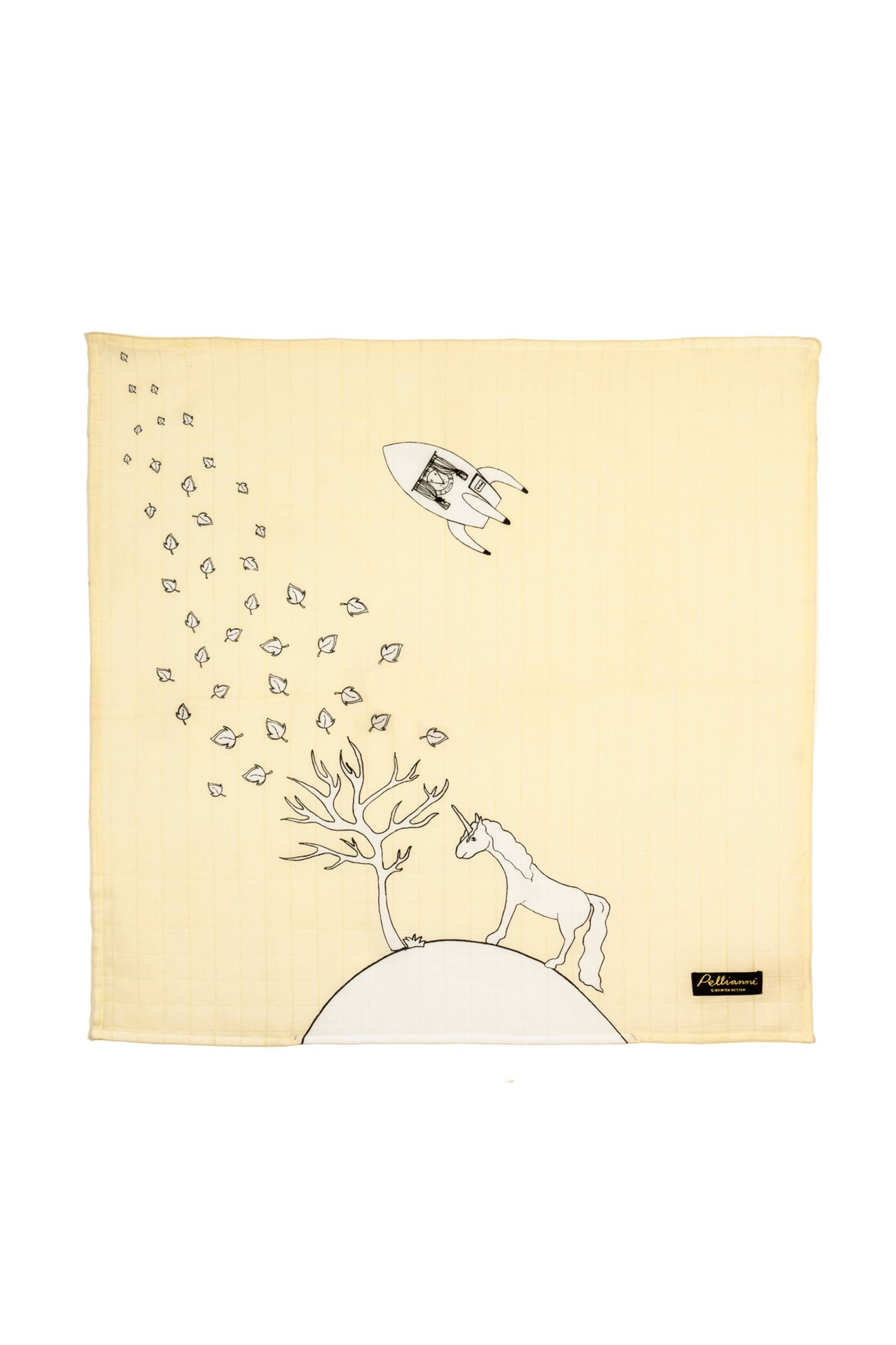 Unicorn Muslin - Ljusgul Med Vitt Tryck