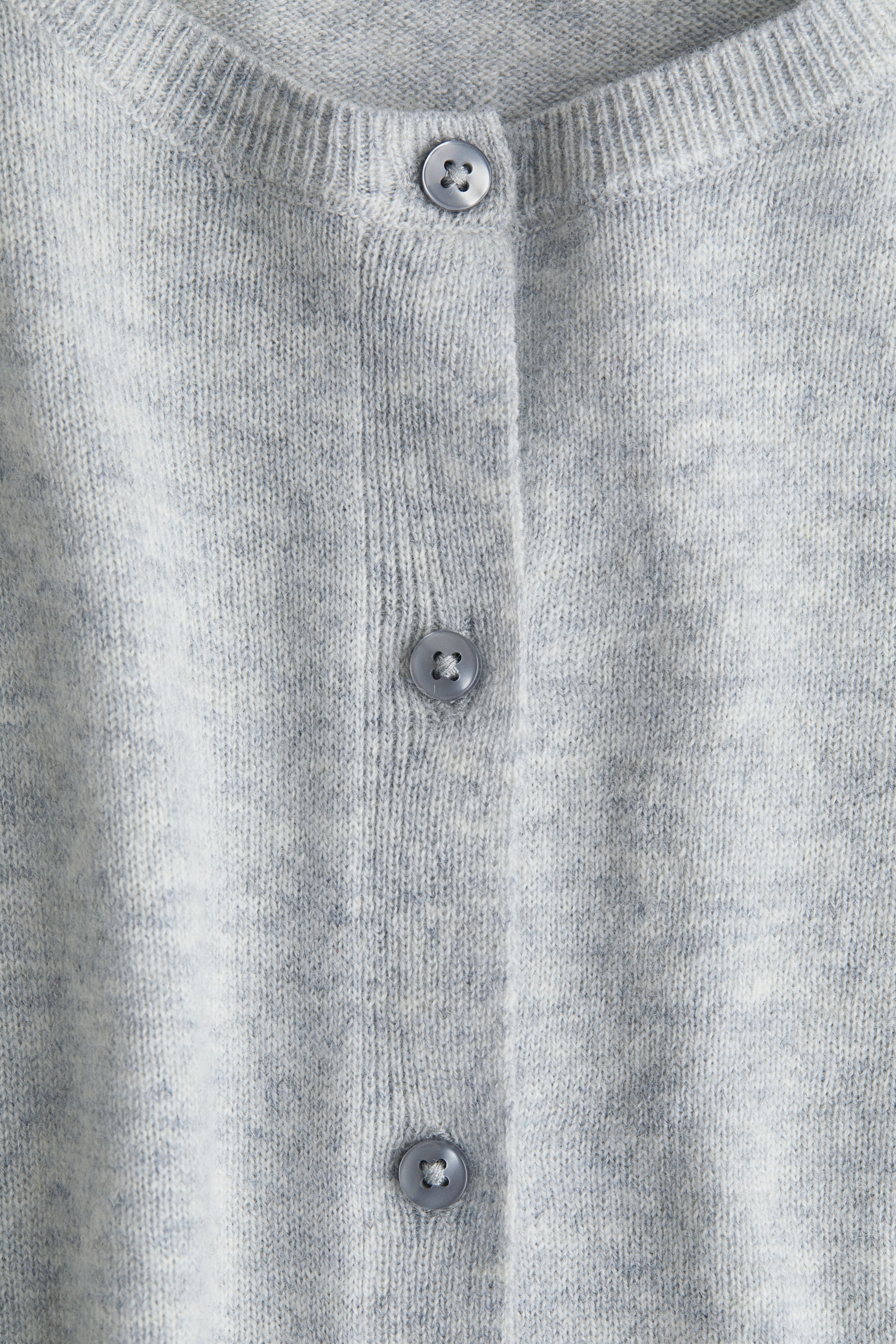 En finstickad kofta i mjuk ull- och kashmirblandning. Koftan har rund halsringning och knäppning fram. Ribbstickad kant kring halsringning, vid ärmslut och nedtill.