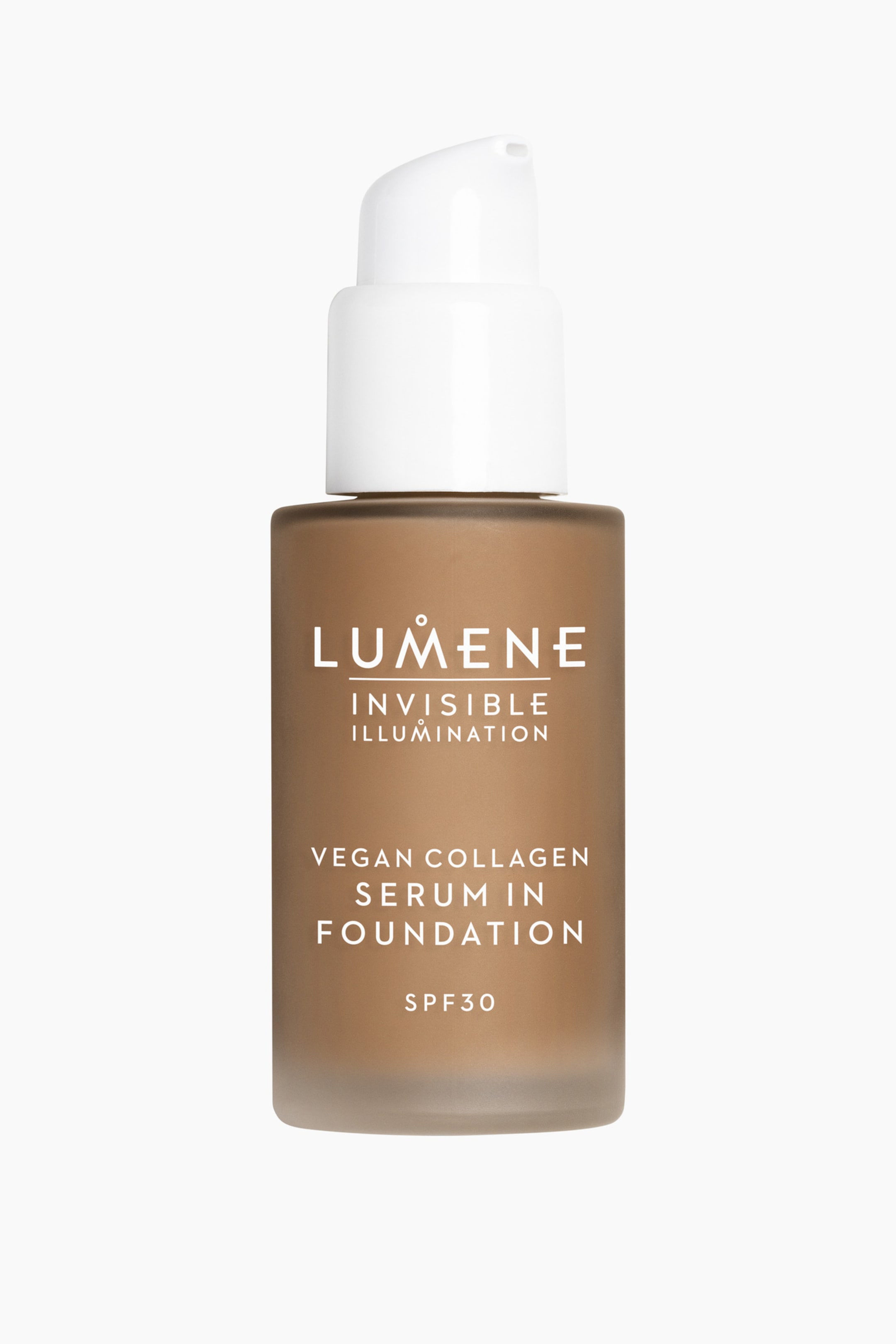 Invisible Illumination Vegan Collagen Serum in Foundation SPF30 är en vårdande foundation med byggbar täckning som ger en jämn hud med naturlig lyster. Sammansättningen med veganskt kollagen, intensivt återfuktande trippel hyaluronsyra och vårdande nordiska ingredienser hjälper till att göra huden spänstigare och slätare varje gång du använder den. SPF 30 + UVA.