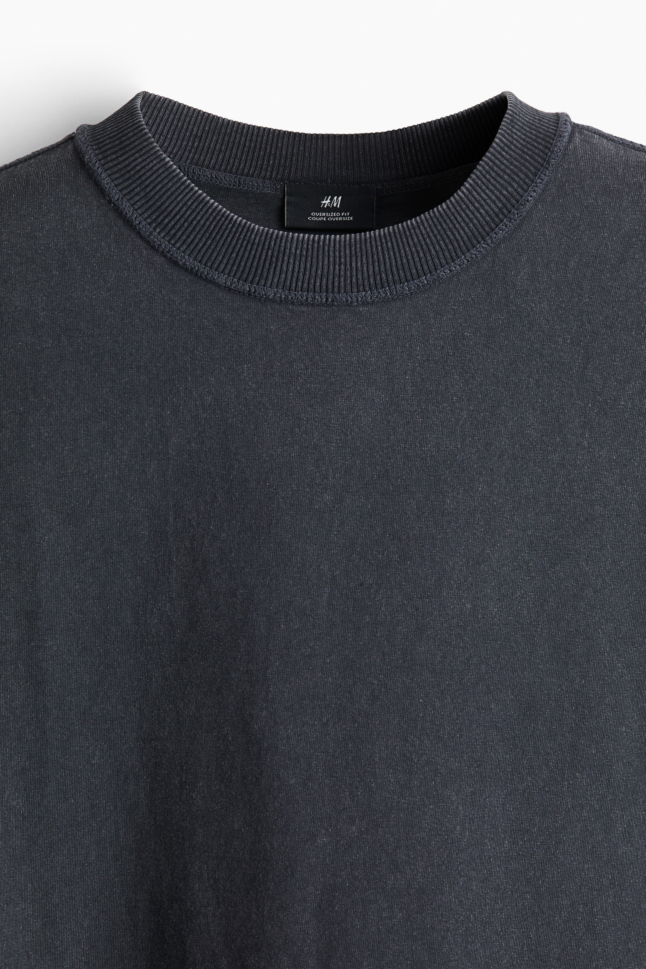 En boxig T-shirt i kraftig bomullstrikå med tvättad look. T-shirten har rund, ribbad halsringning och rakt skuren nederkant.