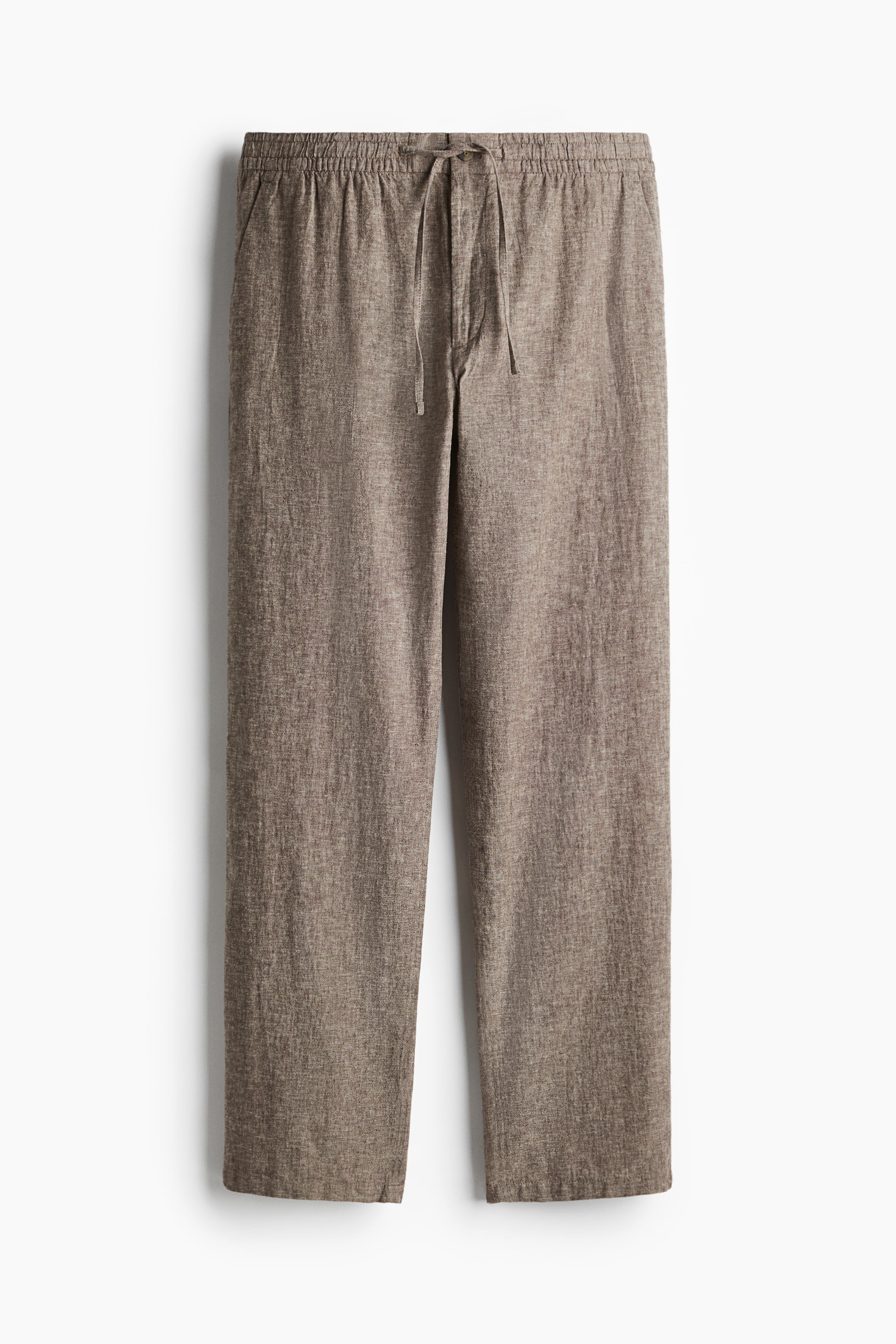 Trousers in an airy cotton and linen weave featuring covered elastication and a drawstring at the waist, a zip fly and button, side pockets and a welt back pocket. Regular fit for comfortable wear and a classic silhouette. Cotton and linen blends combine the softness of cotton with the sturdiness of linen, creating a beautiful, textured fabric that is breathable and drapes perfectly.