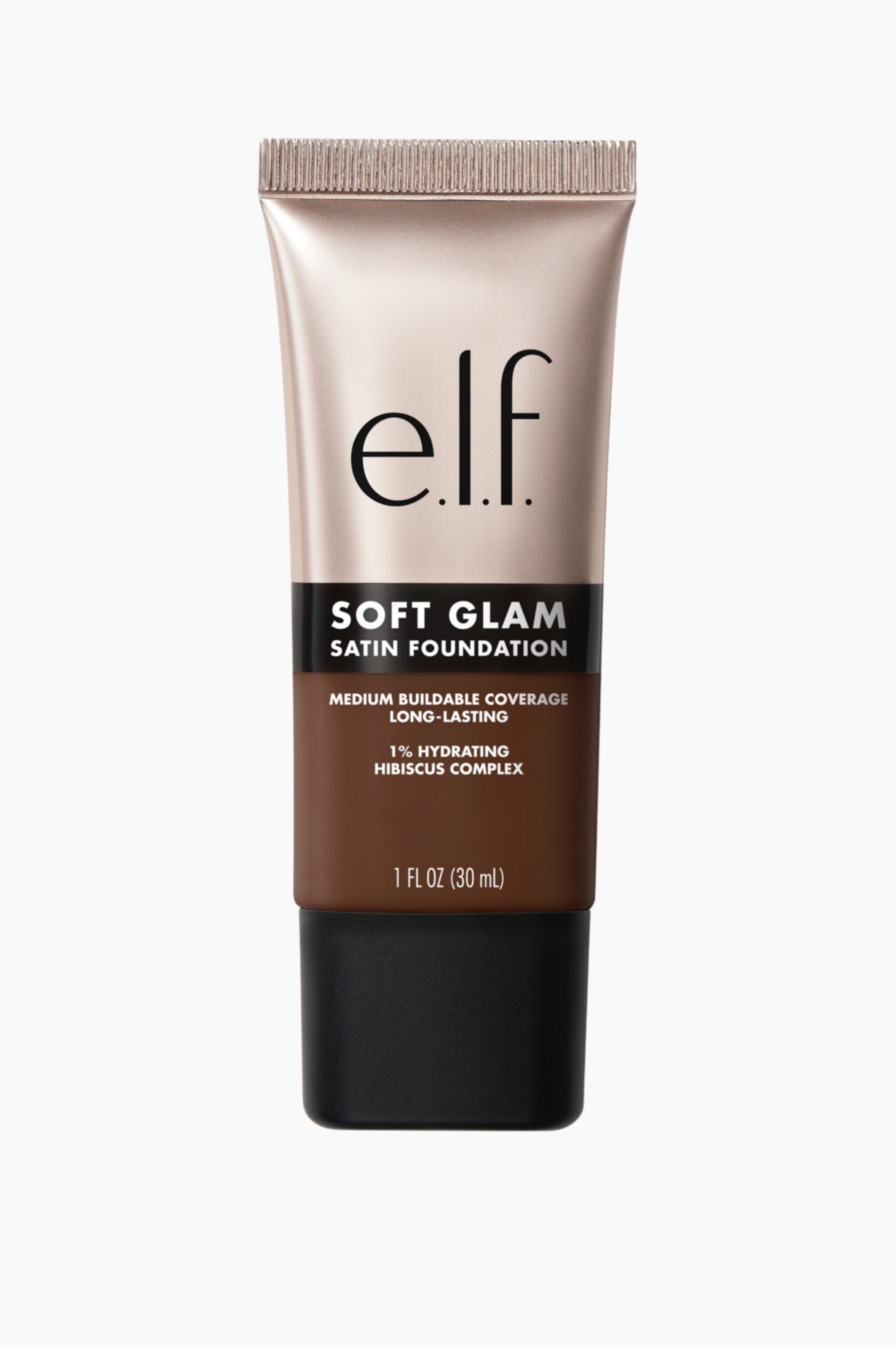 A long-lasting, hydrating liquid foundation that delivers just-right, medium buildable coverage and a satin finish. •Long-lasting foundation that delivers medium, buildable coverage and a satin finish •Breathable formula doesn’t look or feel cakey •Infused with 1% Hydrating Hibiscus Complex, plus pomegranate, blueberry and goji berry extracts •Non-comedogenic (won’t clog pores) •Available in 36 shades for a wide range of skin tones •Suitable for dry, oily and combination skin •100% vegan, e.l.f. is Leaping Bunny Certified Hit that dreamy sweet spot between full beat and barely there with e.l.f. Cosmetics’ long-wearing Soft Glam Satin Foundation. Infused with 1% Hydrating Hibiscus Complex, plus fruit extracts, this breathable liquid foundation won’t clog pores and feels as good as it looks—no caking or heaviness here, just smooth, satiny skin. e.l.f. clean means we go above and beyond EU Cosmetic Regulation and FDA requirements by voluntarily removing more than the required 1,600 ingredients.