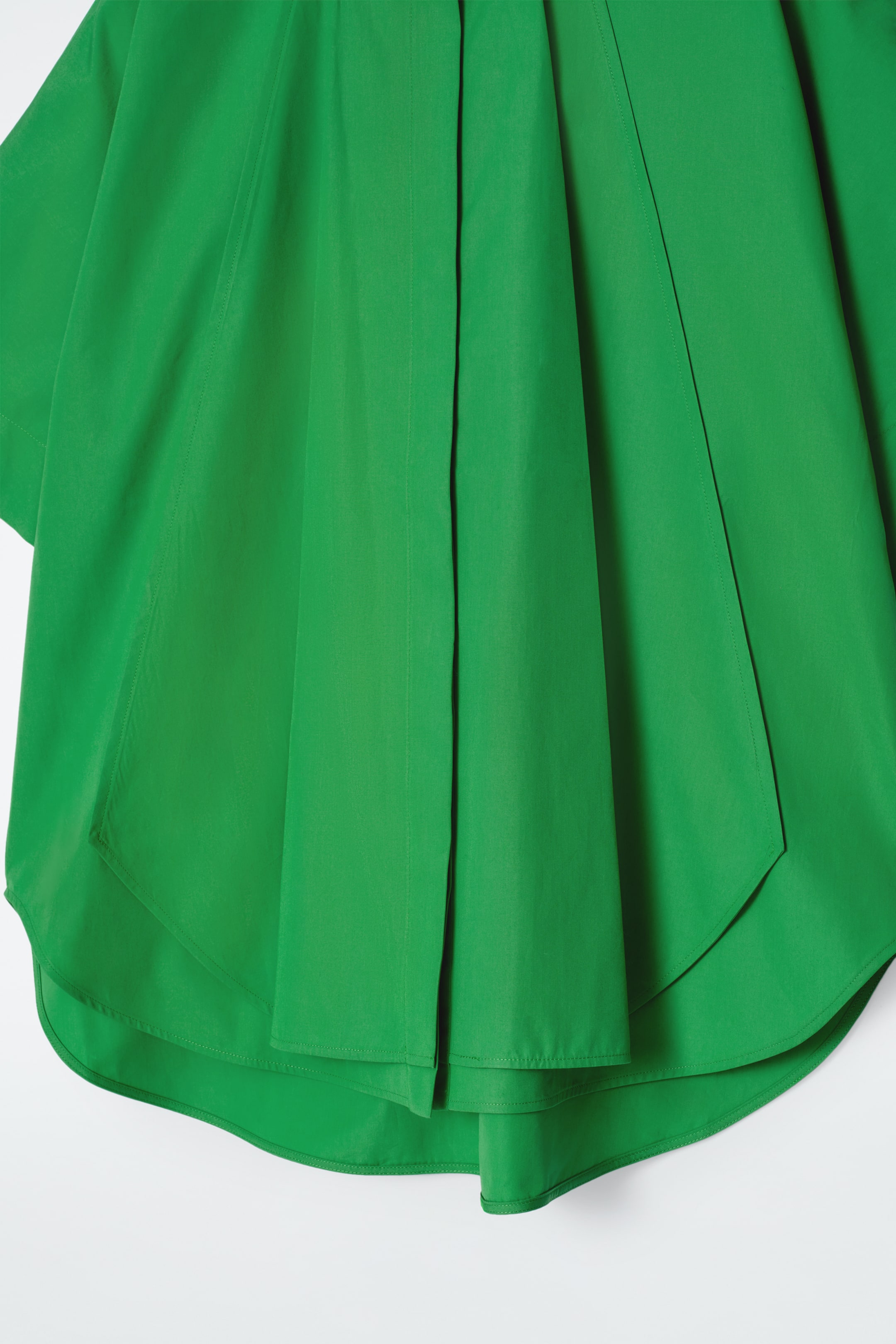 Denna kreation i en uppfriskande grön nyans visar upp en omtolkad variant av den klassiska skjortan. Designen har ett oversize snitt med kort ärm, en rundad nederkant och en extra panel framtill som faller stilrent från kragen. Styla den med långa shorts och slip-ons. Oversize passform Knäppning Material: 100% bomull. Exklusive detaljer / Maskintvätt Bakstyckets längd i storlek 36 är 78,6 cm / Modellen bär storlek 36