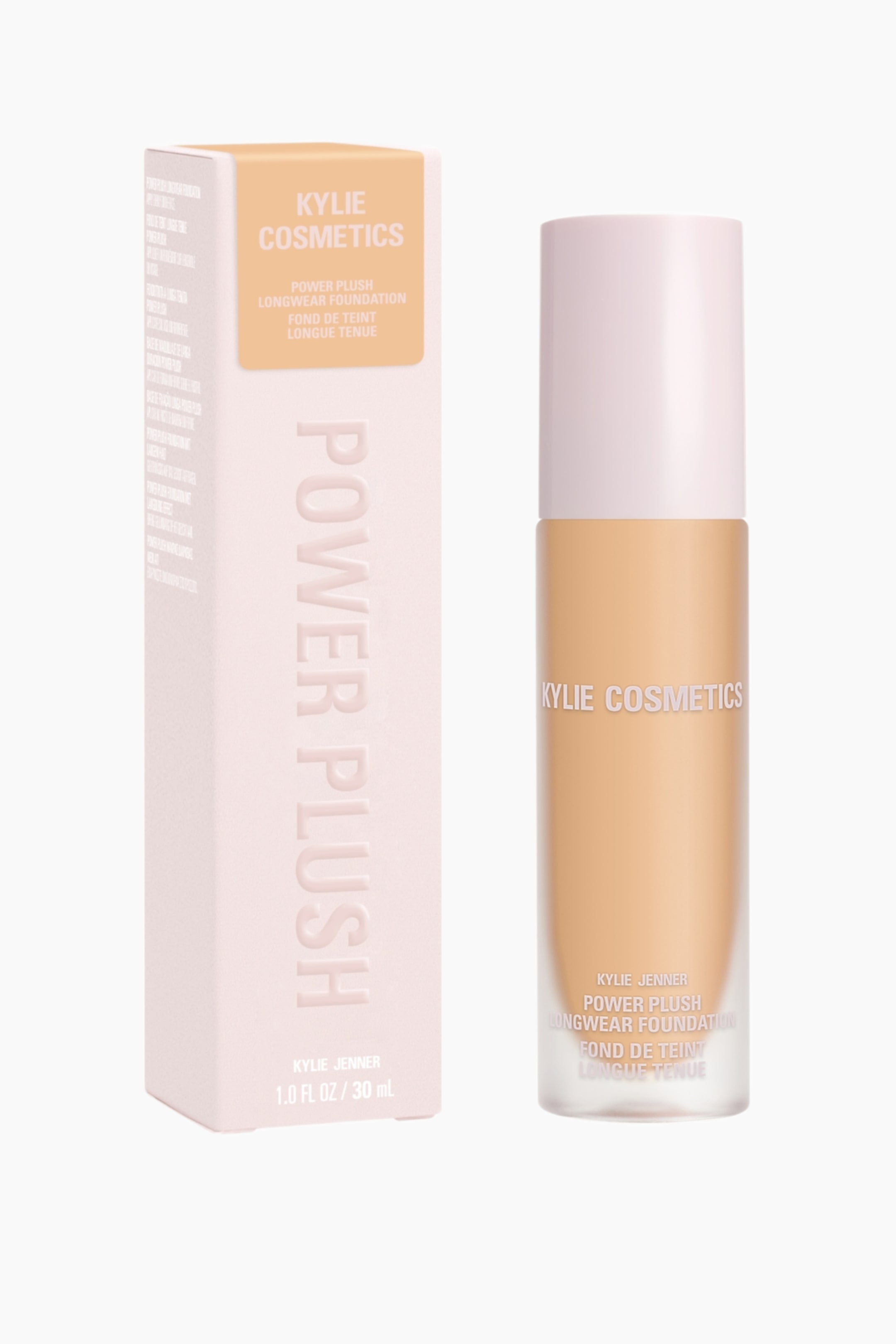 Kylie Cosmetics Power Plush Longwear Foundation är en återfuktande, omedelbart utjämnande foundation med medium, byggbar täckning som ger upp till 12 timmars bekväm vardagsanvändning. Den veganska formulan är en lätt foundation som sömlöst smälter in i huden för en naturlig look som suddar ut fina linjer, porer och textur. .Den ger en mjuk, dämpad känsla med en luftborstad satinfinish som inte är för daggig, inte för matt, utan det perfekta mellantinget.