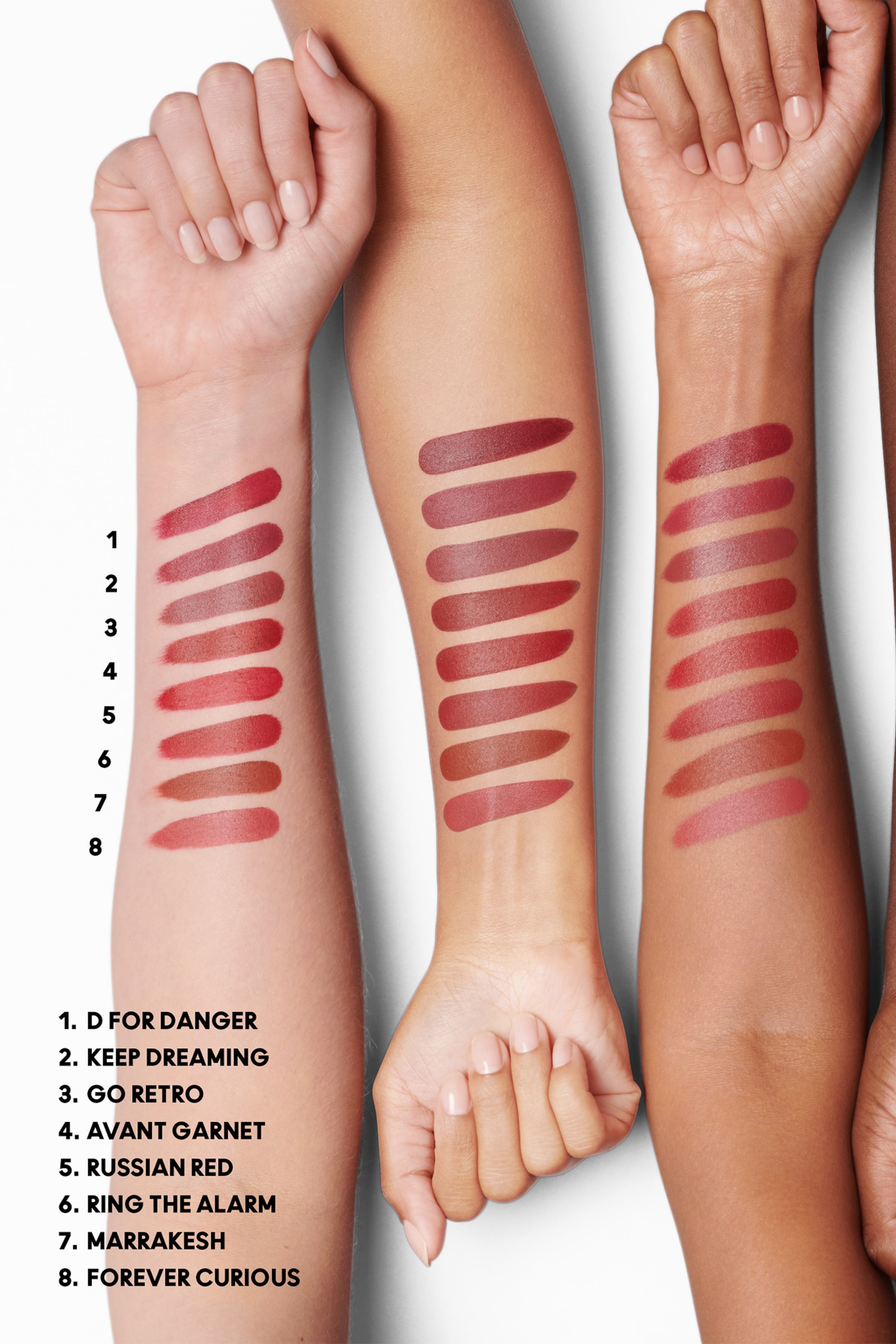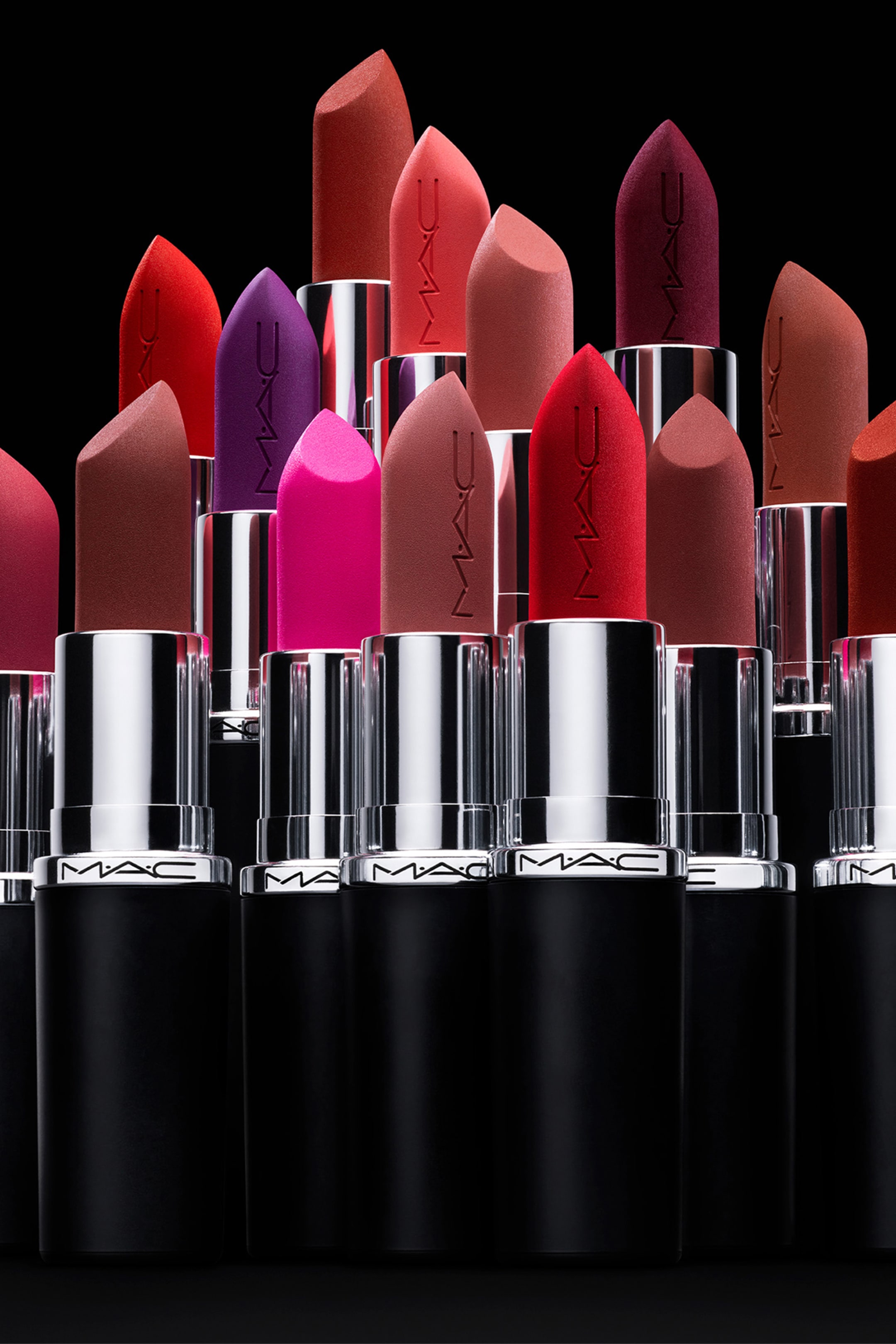 MACs ikoniska läppstift ger nu läpparna ÄNNU MER med en silkesmatt finish och en läppvänlig formula som ser fylligare ut, känns bättre och håller längre. Få MER FÄRG med heltäckande, pigmentrik täckning i vårt bredaste sortiment med 40 nyanser. Get MORE COMFORT med en krämig blandning av kokosolja, ekologiskt sheasmör och ekologiskt kakaosmör som ger näring och vård åt läpparna. Få MER VÅRD med omedelbar och åtta timmars fukt. LAST LONGER med 12 timmars färg som inte bleknar och som gör läpparna synligt fylligare redan från första strykningen. Få en mer lyxig look med högblank förpackning och en MAC-präglad kula. Slutligen, var MER ANSVARSFULL med ett läppstiftetui som innehåller minst 30% PCR-material. Det ikoniska matta läppstiftet har fått en ny skepnad.