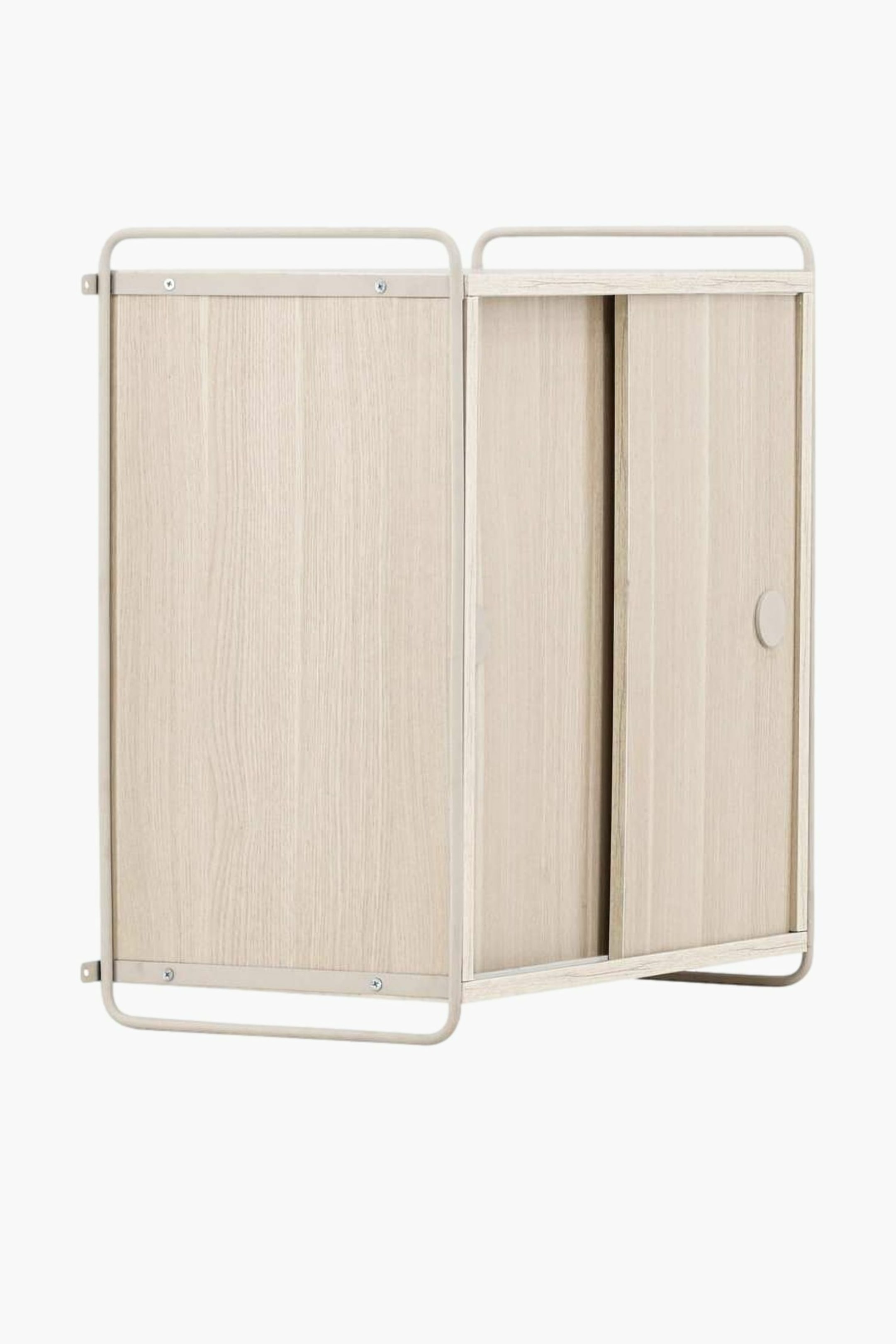 Inred ditt hem på ett mysigt och smart sätt med hjälp av vår trendiga vägghylla i trä från Paris-serien! Med en smal svart stålram stödjer denna vägghylla ett elegant skåp med två snygga luckor i mörkbrun MDF. Upplev fördelarna med att diskret förvara dina tillhörigheter, samtidigt som det ger en modern touch till dina väggar.Bakom de två trädörrarna hittar du två smarta hyllor som ger dig gott om plats för att organisera dina tillhörigheter på ett smart sätt. På så sätt kombinerar denna vägghylla funktionalitet med estetik på bästa möjliga sätt. Dessutom passar den bra i alla rum - från vardagsrummet till sovrummet eller kontoret. Ge dina väggar liv och låt dem spegla din personliga stil!D35 W60 H68