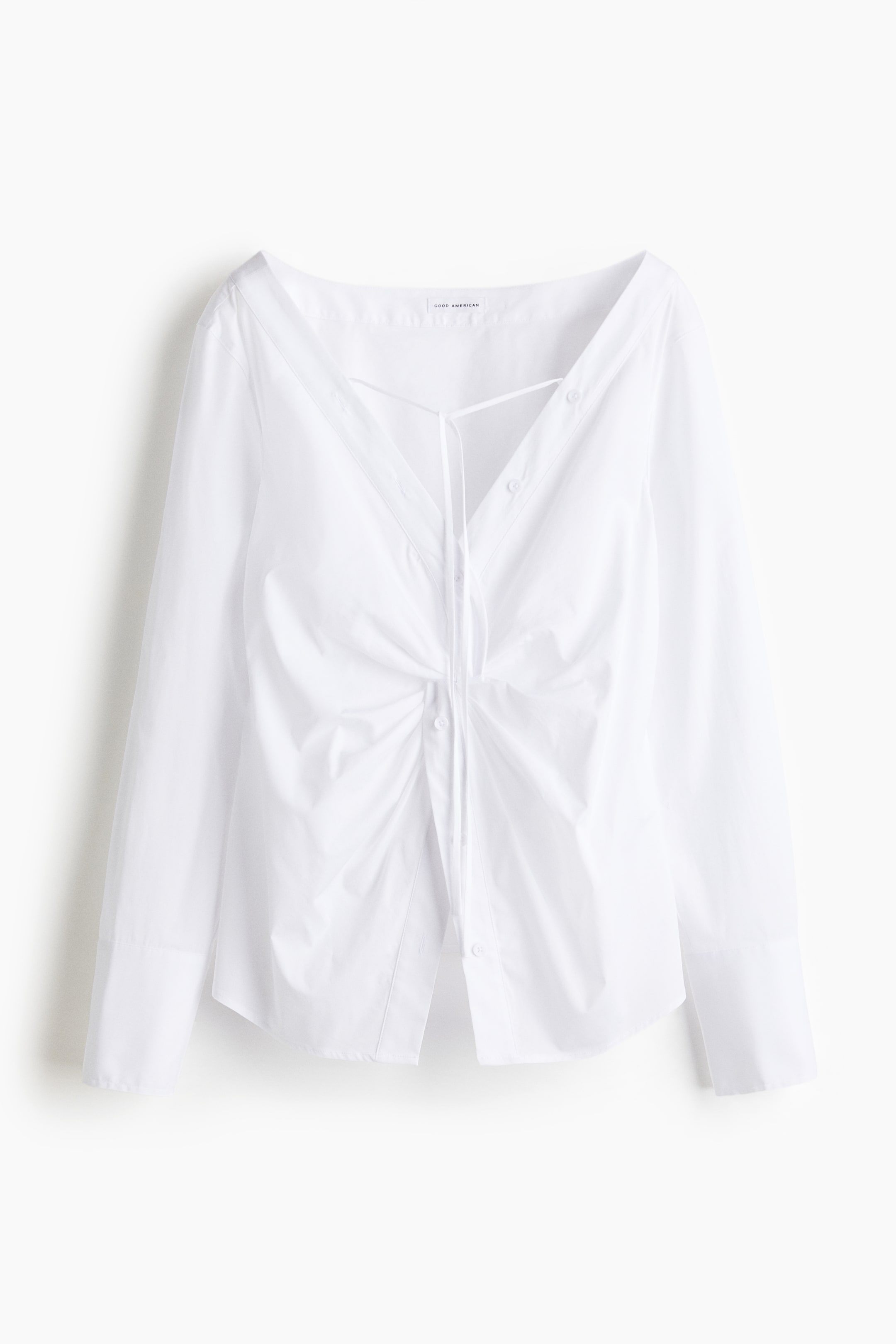 Off-the-shoulder-toppen i poplin ger en luftig struktur med en sofistikerad twist. Perfekt fräsch men ändå avslappnad – det här är din garderobs nya mittpunkt.Off-shoulder-halsringningLång ärm