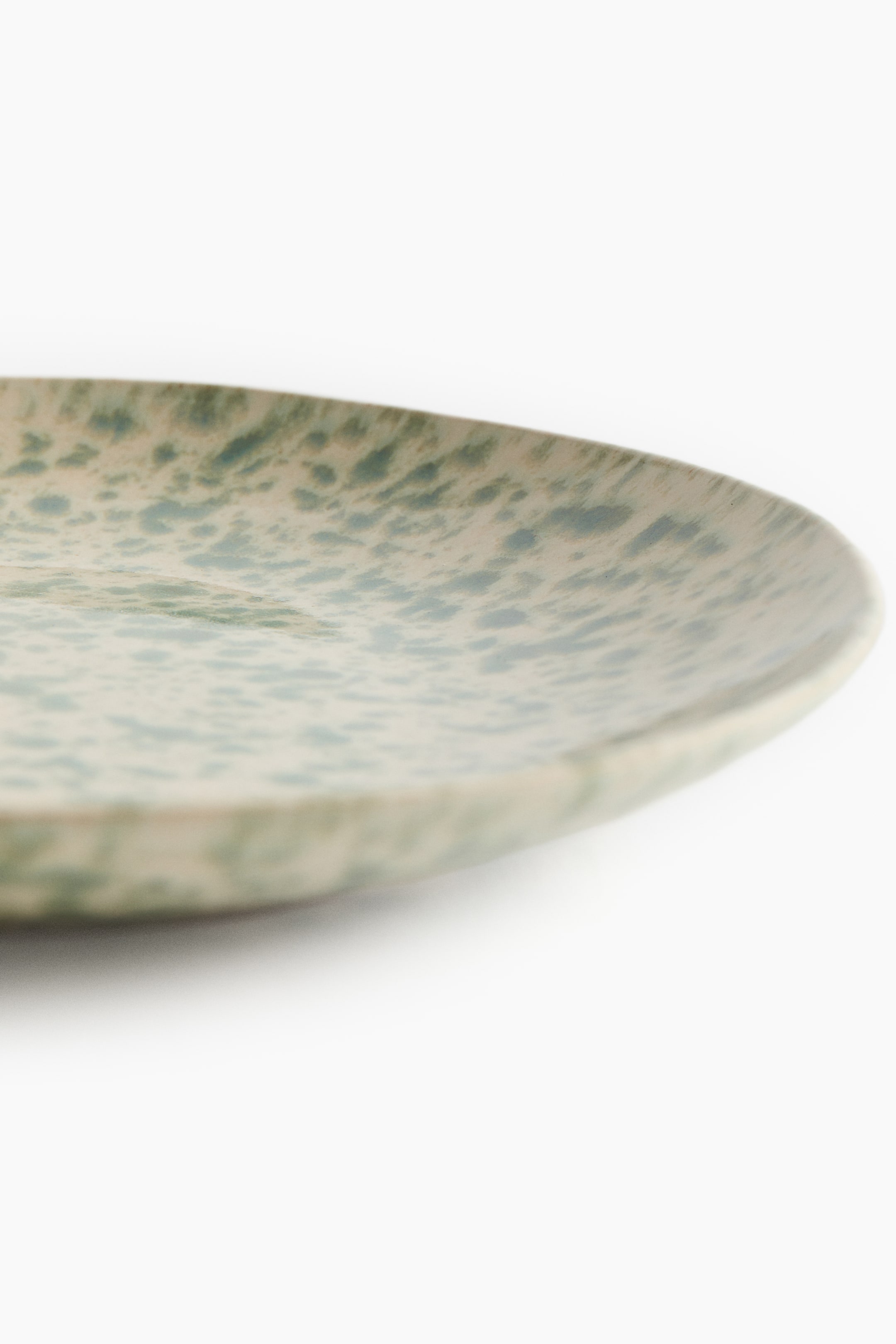 En förrättstallrik i stengods med spräckligt mönster för en naturlig, handgjord look.