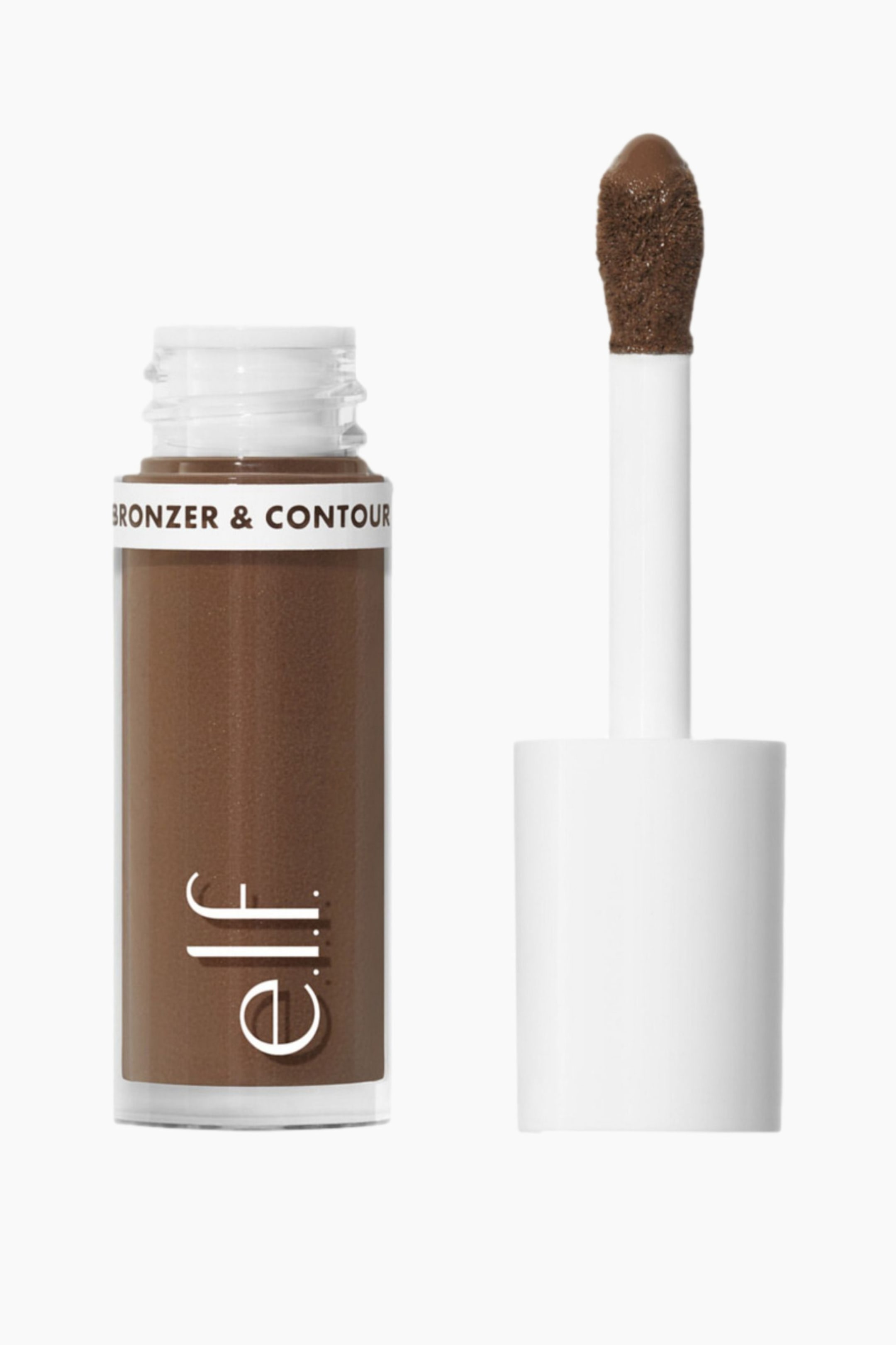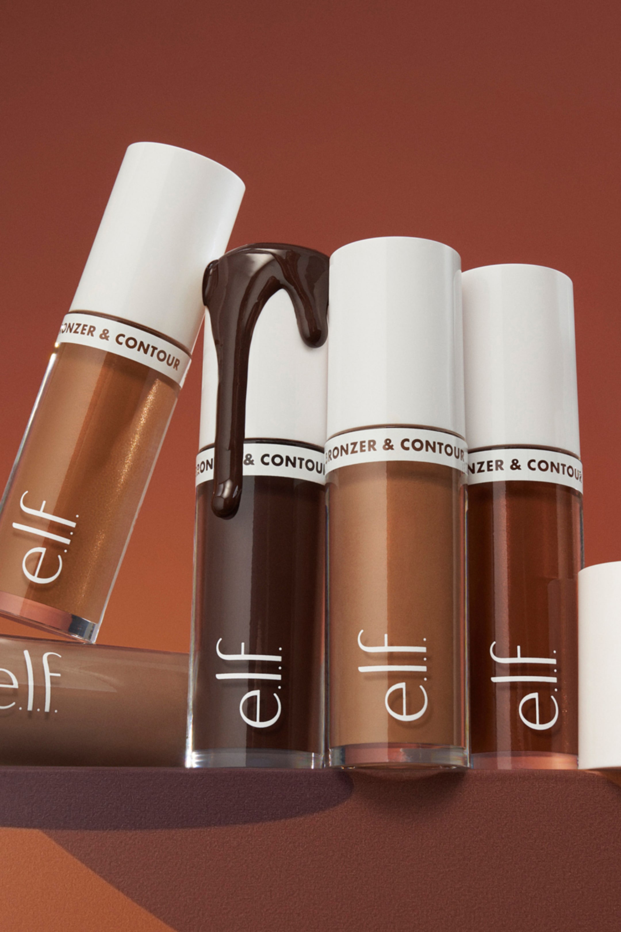 Dab 1-2 dots on hollows of cheeks, forehead, sides of nose and jawline. Blend out using e.l.f.’s Liquid Bronzer & Contour Duo Brush.