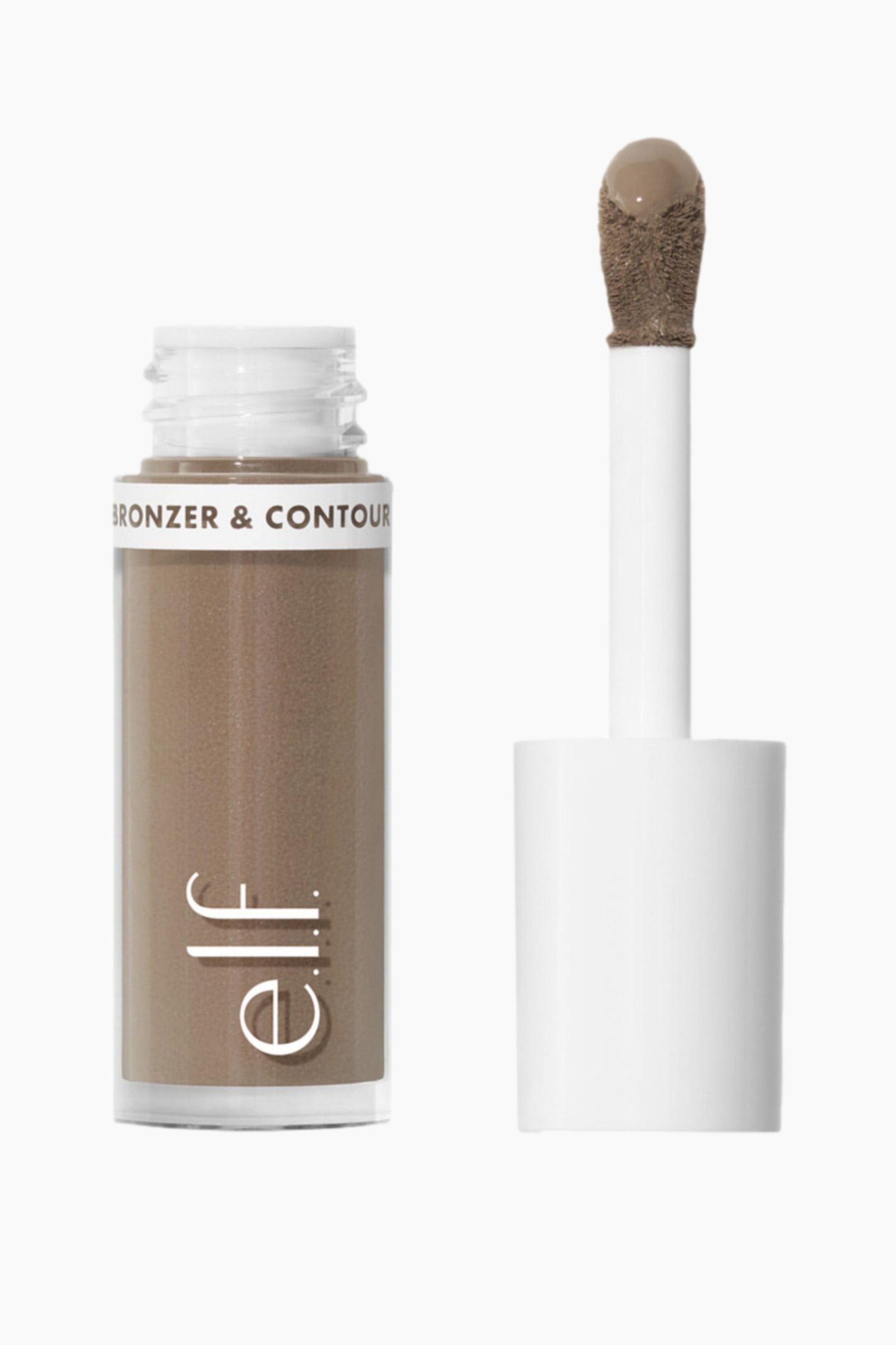 Dab 1-2 dots on hollows of cheeks, forehead, sides of nose and jawline. Blend out using e.l.f.’s Liquid Bronzer & Contour Duo Brush.