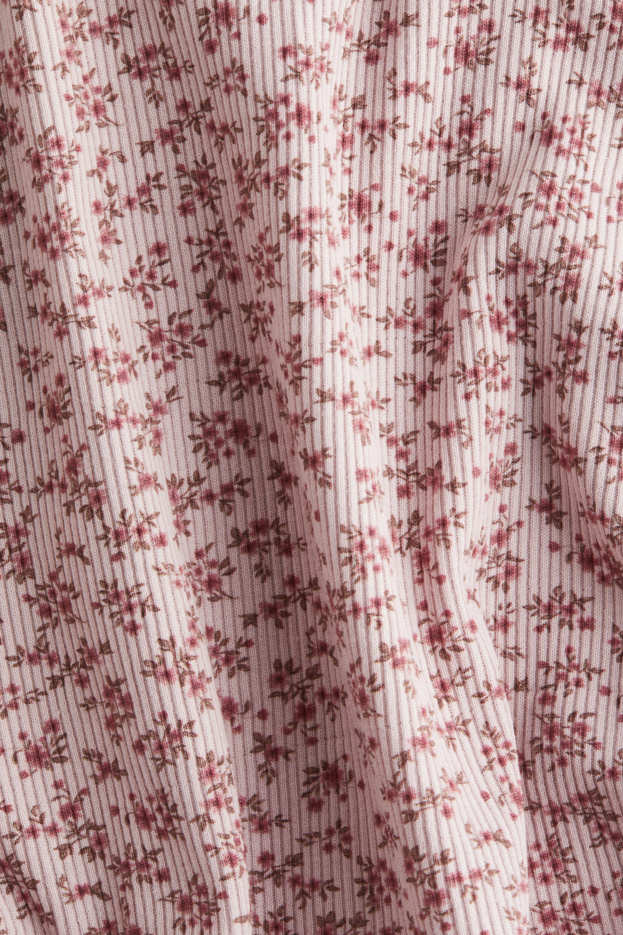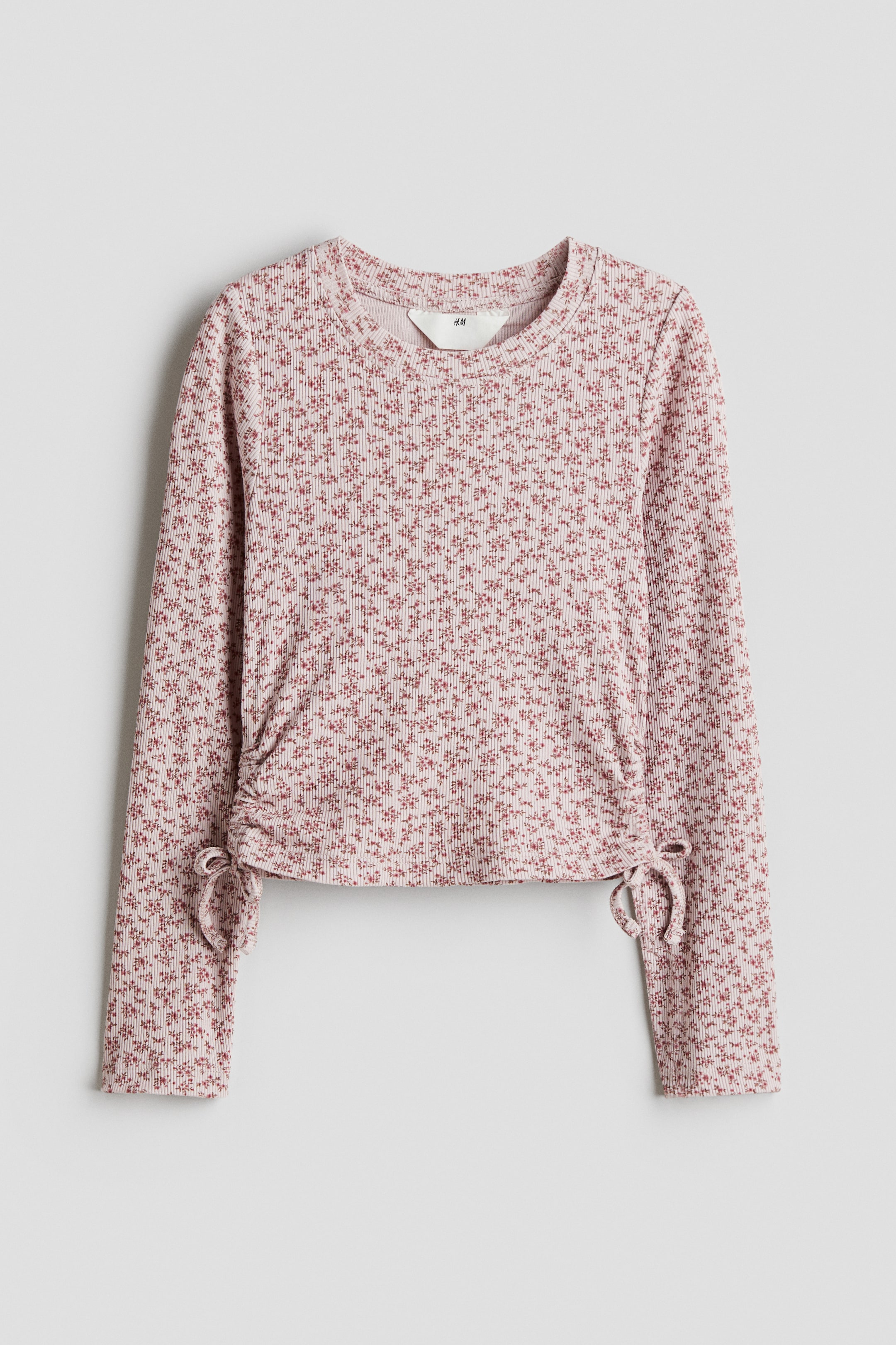 En topp i mjuk bomullstrikå med dragskor i sidorna för en draperad effekt. Toppen har rund, ribbad halsringning och lång ärm.