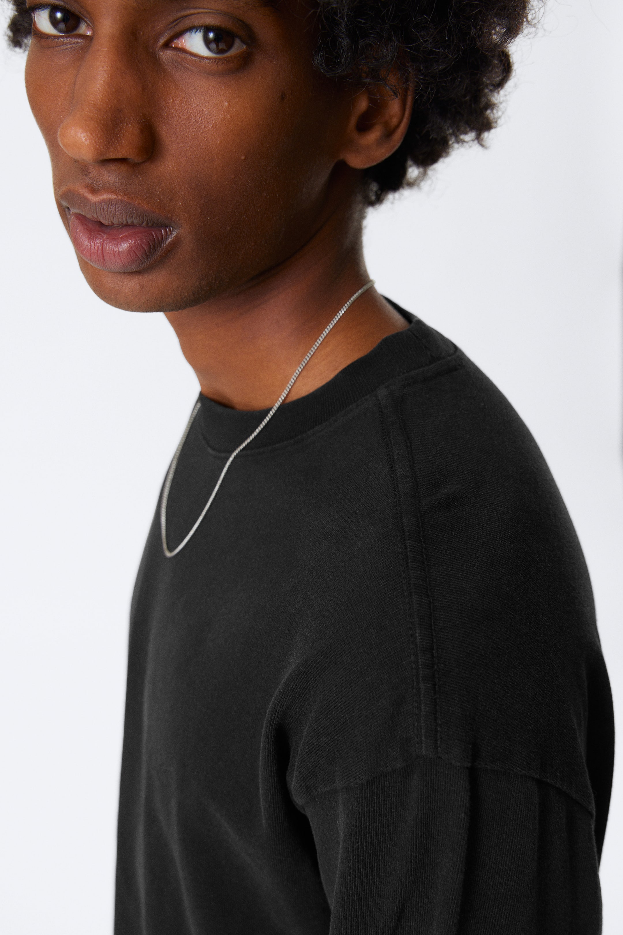 En långärmad T-shirt i mjuk bomullsjersey. Designad med en ledig passform, den har en klassisk rund halsringning med ribbad kant, ribbade muddar och något nedsänkta axlar.