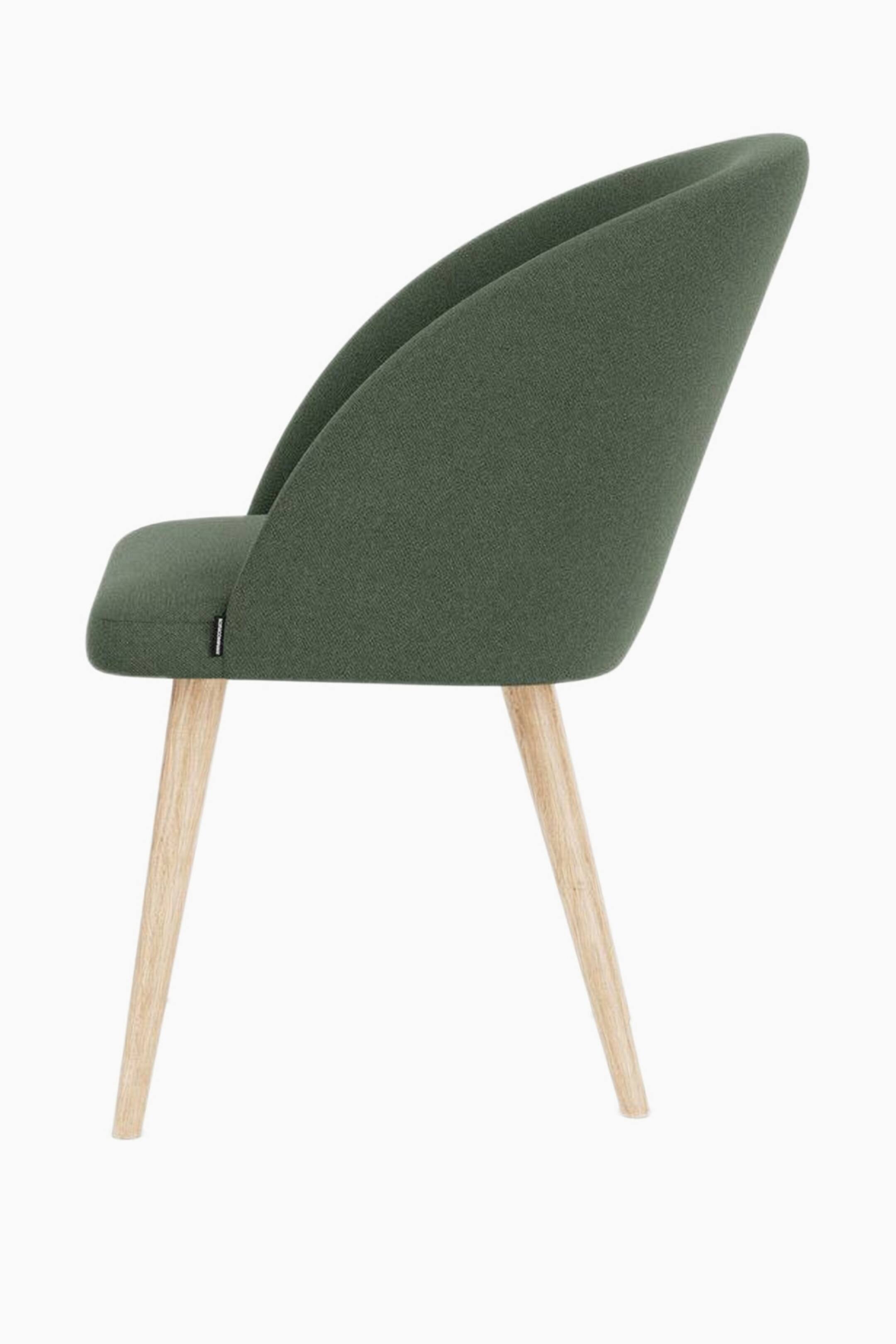 Holly matstolen från SOFACOMPANY har ett lätt och elegant uttryck. Det lätt lutande ryggstödet omsluter sitsen och bidrar till en bekväm sittkomfort. Den helklädda överdelen skapar en vacker kontrast till de vinklade ekbenen. Holly är klädd i ett exklusivt tyg med melangeeffekt i en mörkgrön ton.L: 54cm D: 62cm H: 83cm