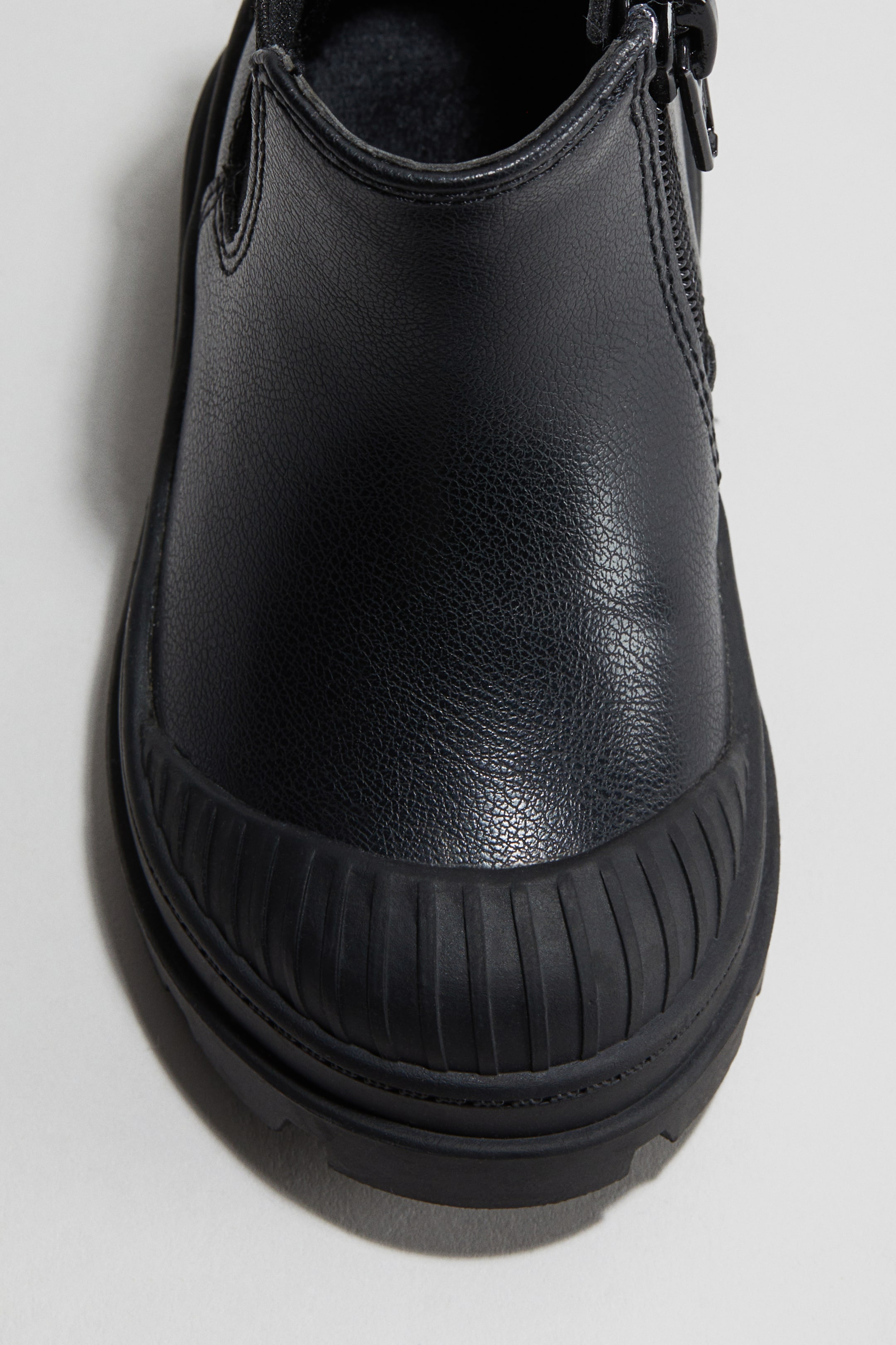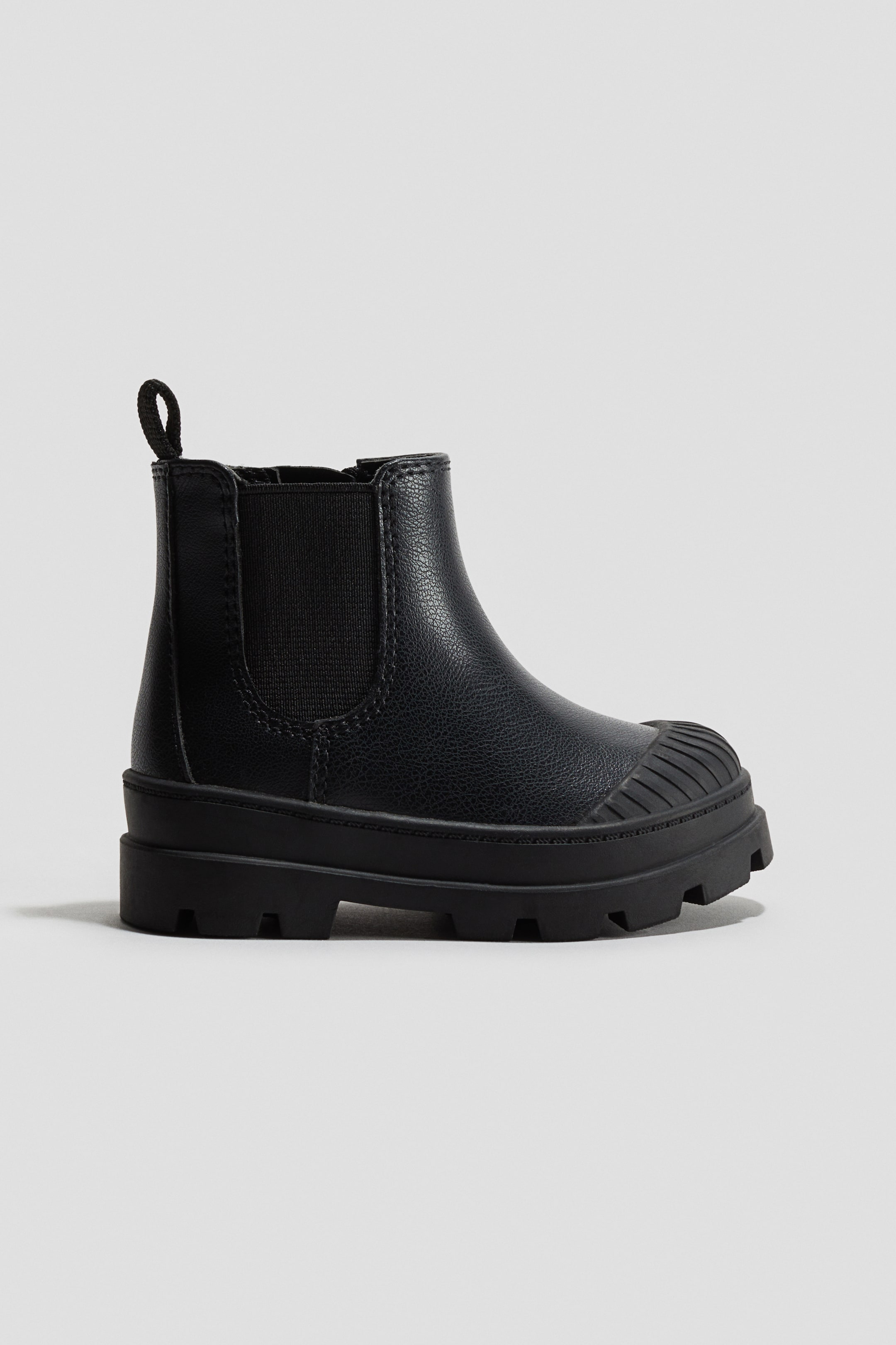 Ett par chelseasboots med dragkedja på ena sidan och resår på den andra. De har foder i mjuk velour och innersula i det tekniska skummaterialet Cellfit™ för extra komfort. Grov yttersula.