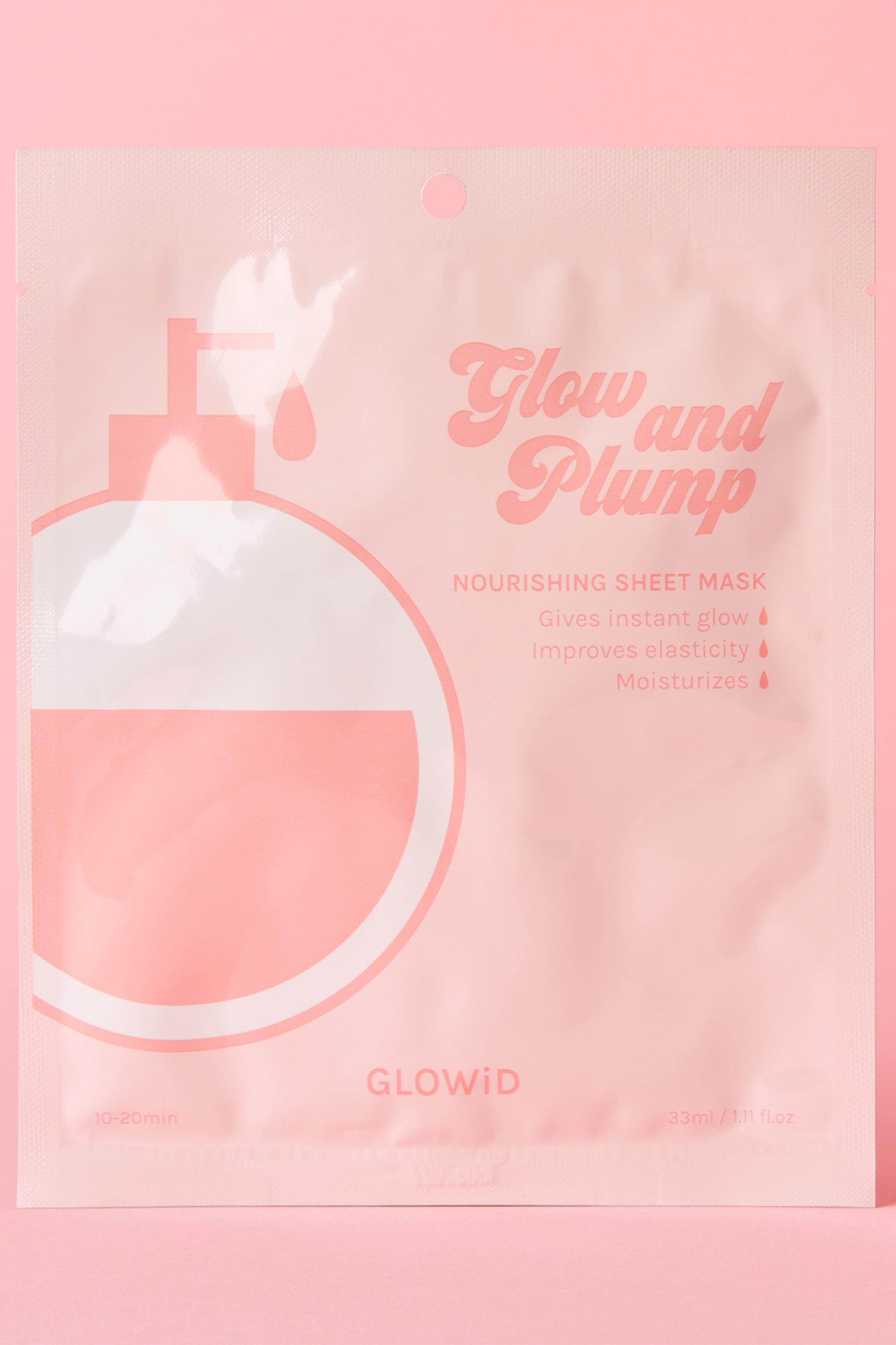 Glow & Plump Sheet Mask är en lystergivande sheet mask berikad med retinylpalmitat (vitamin A), acetylhexapeptid och natriumhyaluronat som ger huden en fylligare känsla, bidrar till förbättrad elasticitet och gör huden mjuk och återfuktad. Masken verkar även utjämnande på fina linjer och stärker hudens barriär för en klar hud med naturlig lyster. Produkten innehåller dessutom adenosine, ginsengrot, propolis och vitamin E som vårdar, skyddar och hjälper till att plumpa huden. De små hålen vid näsa och panna visar var du enkelt kan klippa för att masken ska anpassas efter dina unika ansiktskonturer och sitta perfekt. Den tunna, följsamma sheet-masken smälter mot huden och är ideal för dig som vill ha en jämnare hudton, extra glow och en återfuktad, mjuk och spänstig känsla.