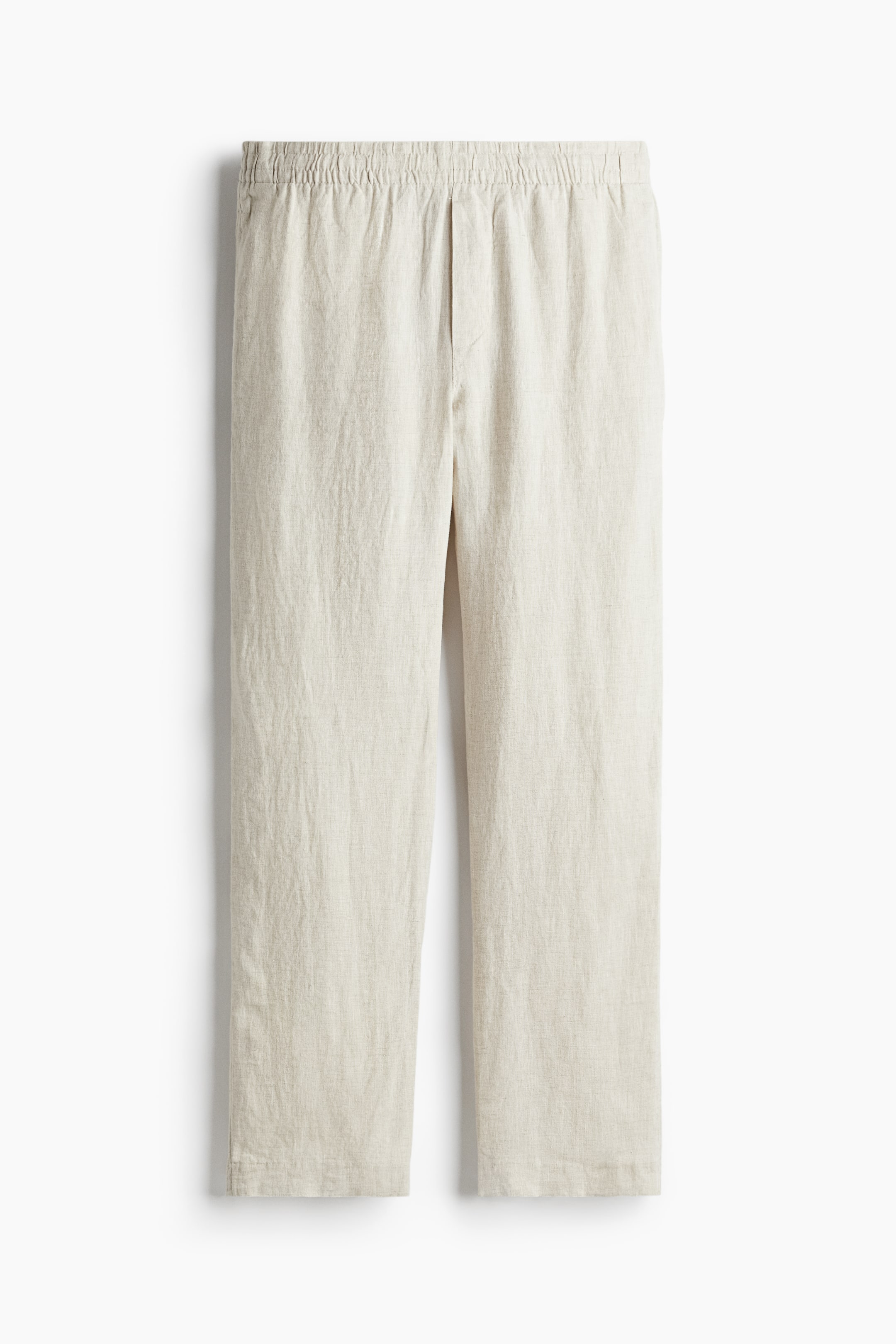 İnce ketenden, beli kaplı lastikli ve gizli büzgü bağlı, yalancı patlı, gizli yan cepli, arkada bir adet biyeli cepli pantolon. Rahat giyim ve klasik bir silüet için normal kesimli. Ketenden yapılan kumaş hava alır, hem ütülendiğinde hem de kırışıkken güzeldir ve zamanla yumuşar.