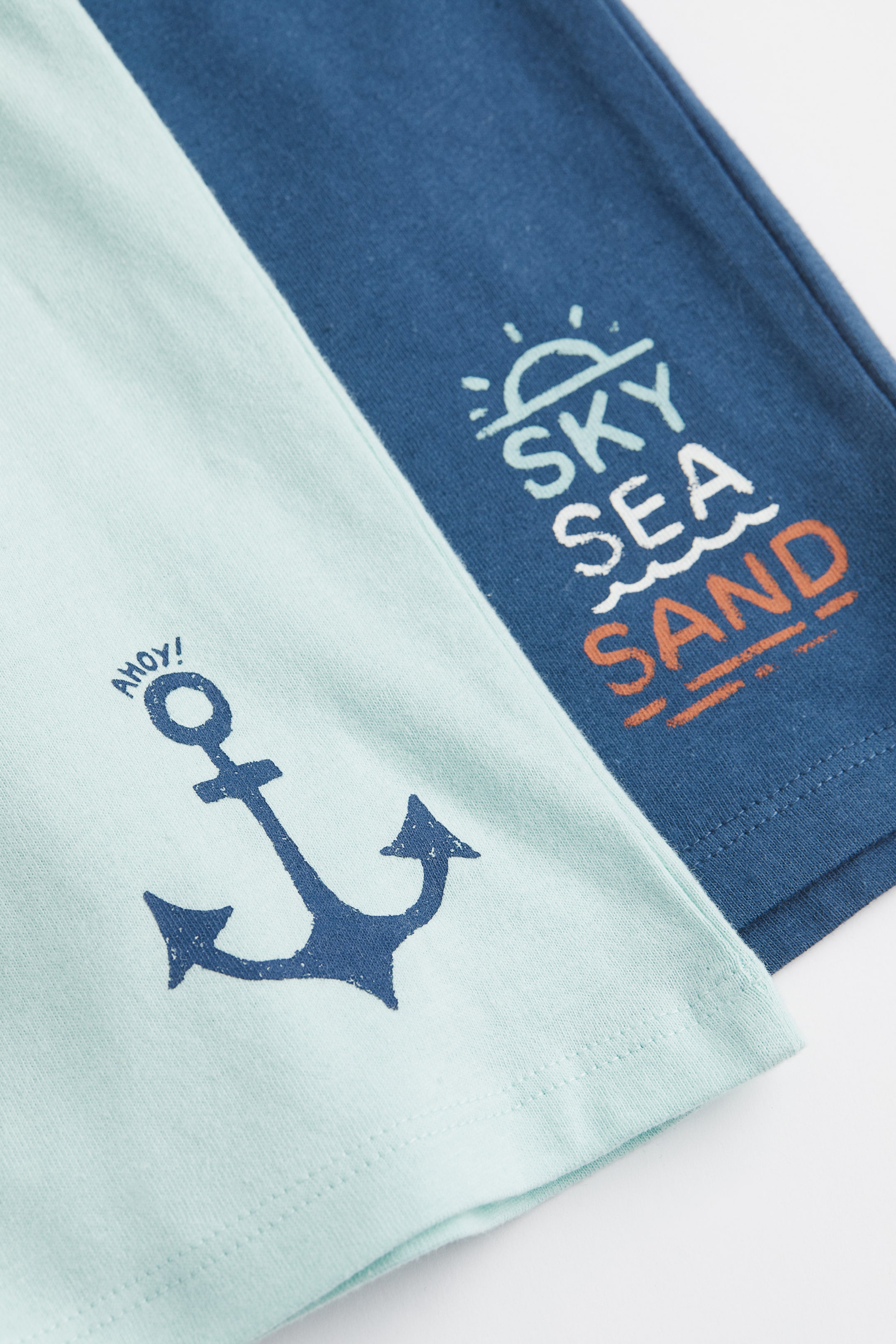 - 淺土耳其藍/海軍藍/白色/橘色, Ahoy! Sky, Sea, Sand, 素色, 船錨、太陽光芒