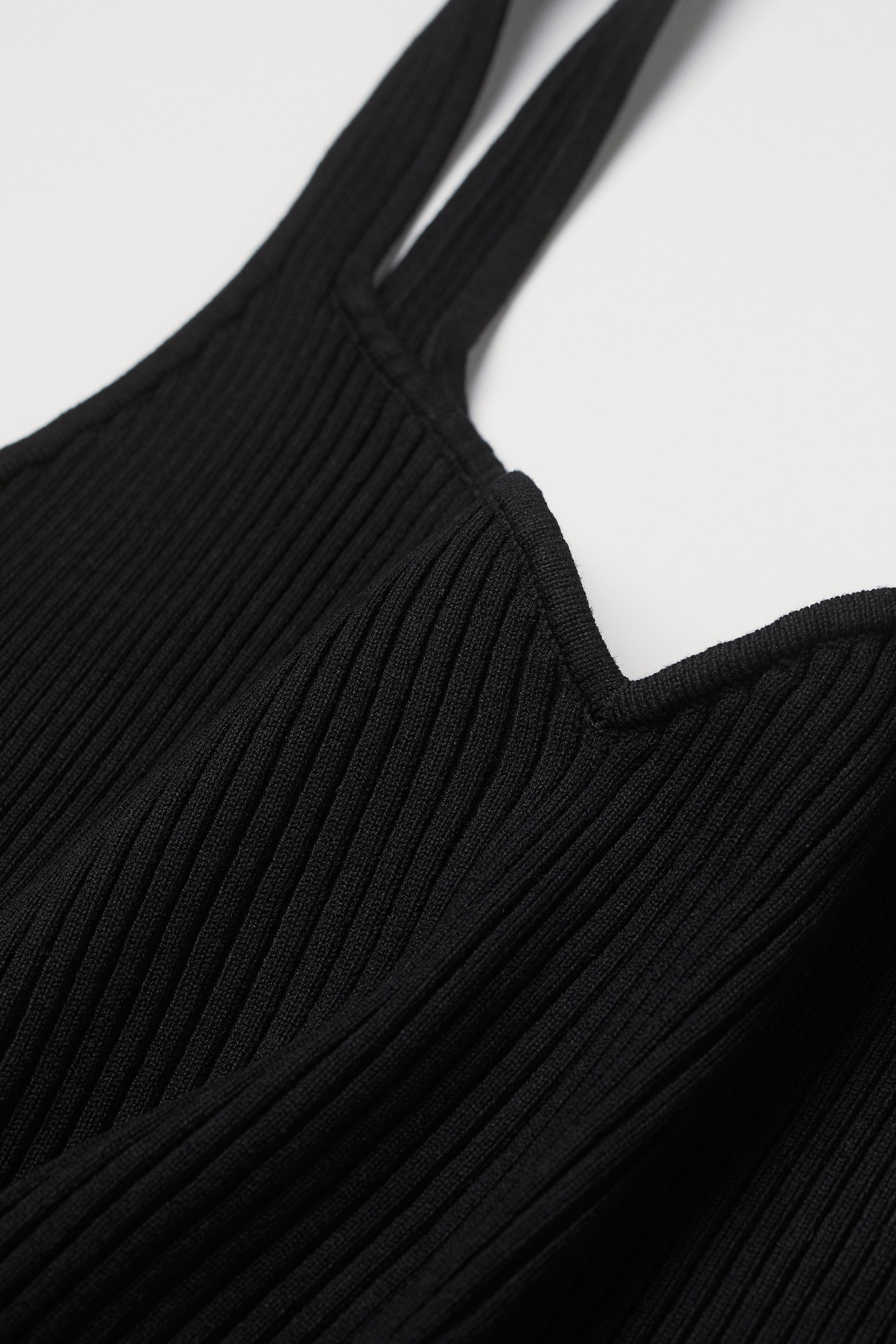 羅紋針織上衣,柔軟嫘縈混紡布料,合身剪裁,桃心領,寬肩帶。