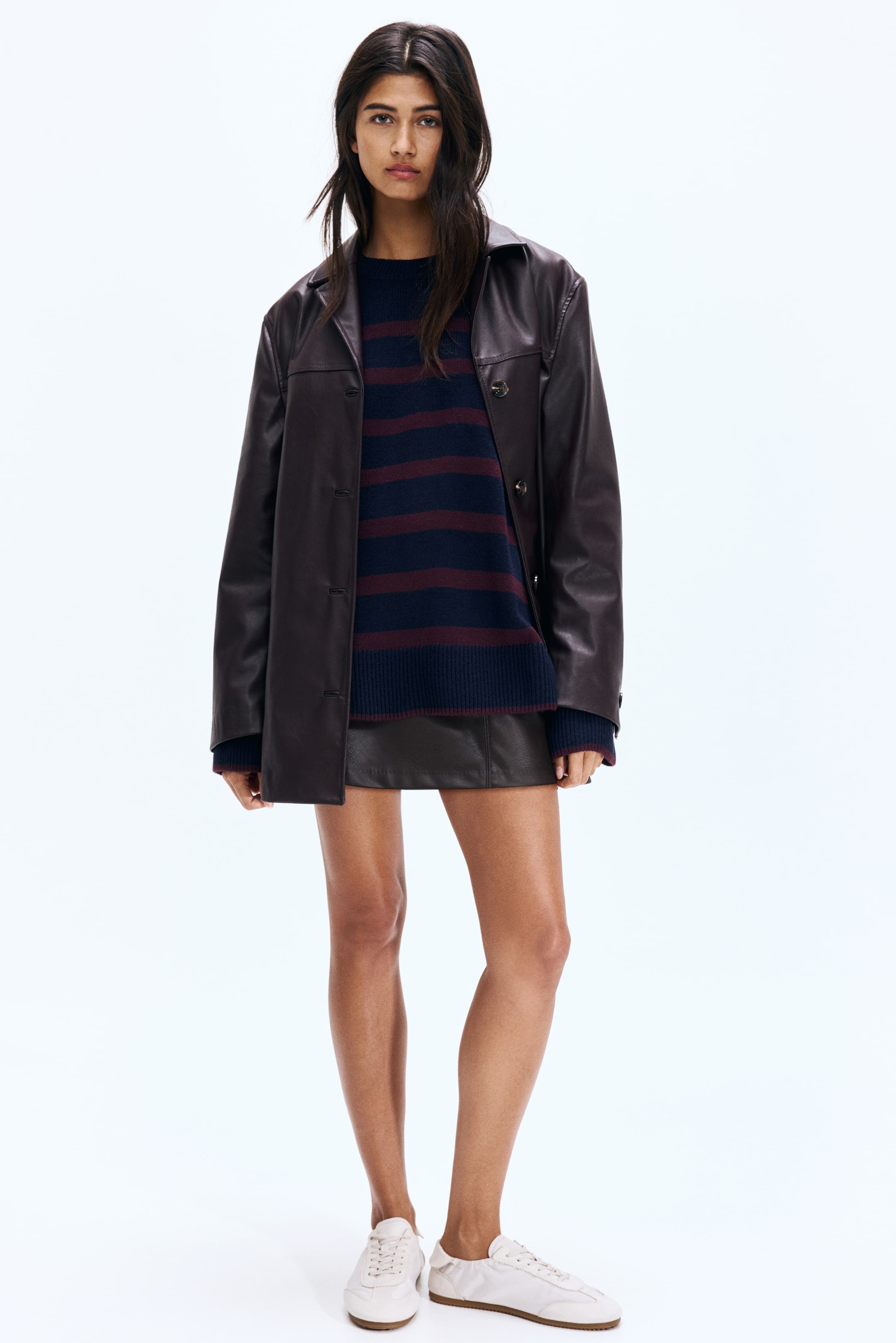 精織套衫,垂肩長袖,羅紋圓領、袖口和下襬。