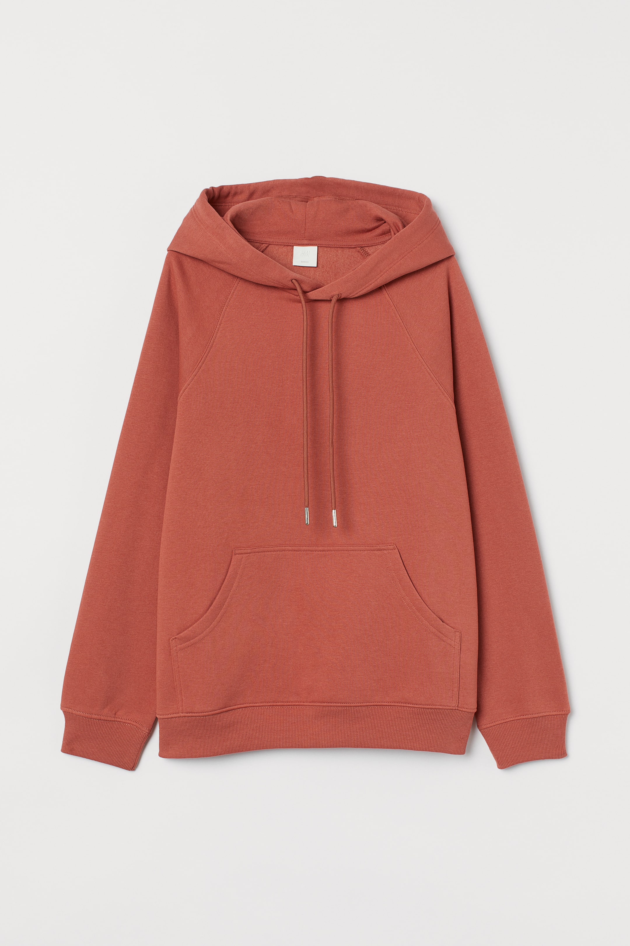 汗衫布料寬鬆上衣,連衣帽有內裡和抽繩,有袋鼠袋,羅紋袖口和下襬。