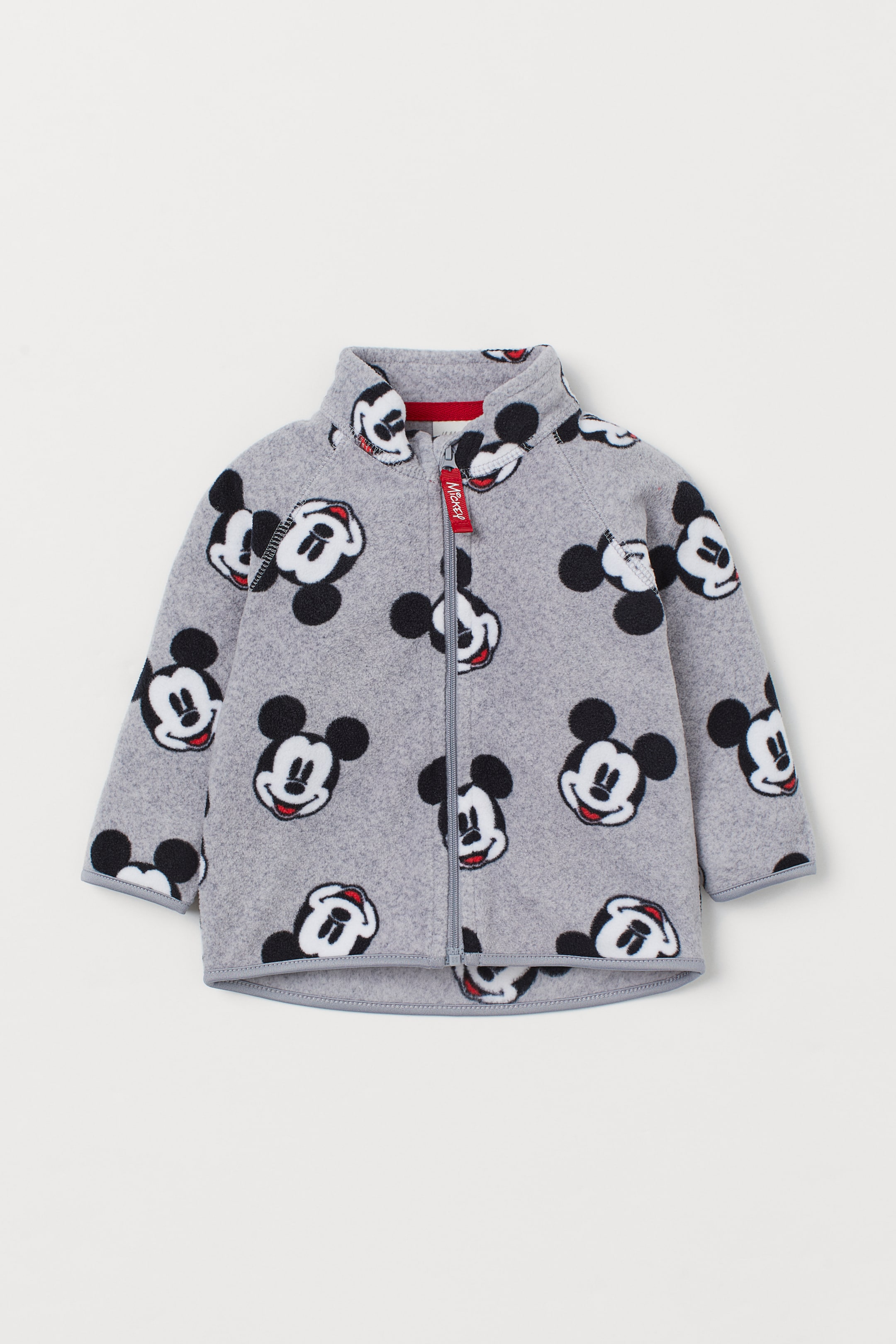 柔軟印花絨毛外套,立領,正面拉鍊有防磨擋布,長拼接袖。無內裡。