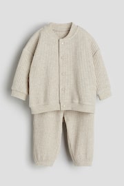 Cosy set in soft, waffled jersey with a cardigan and a pair of matching joggers. Cardigan with press-studs down the front, dropped shoulders and long sleeves. Ribbing around the neckline, cuffs and hem. Joggers with an elasticated drawstring waist and covered elastication at the hems.