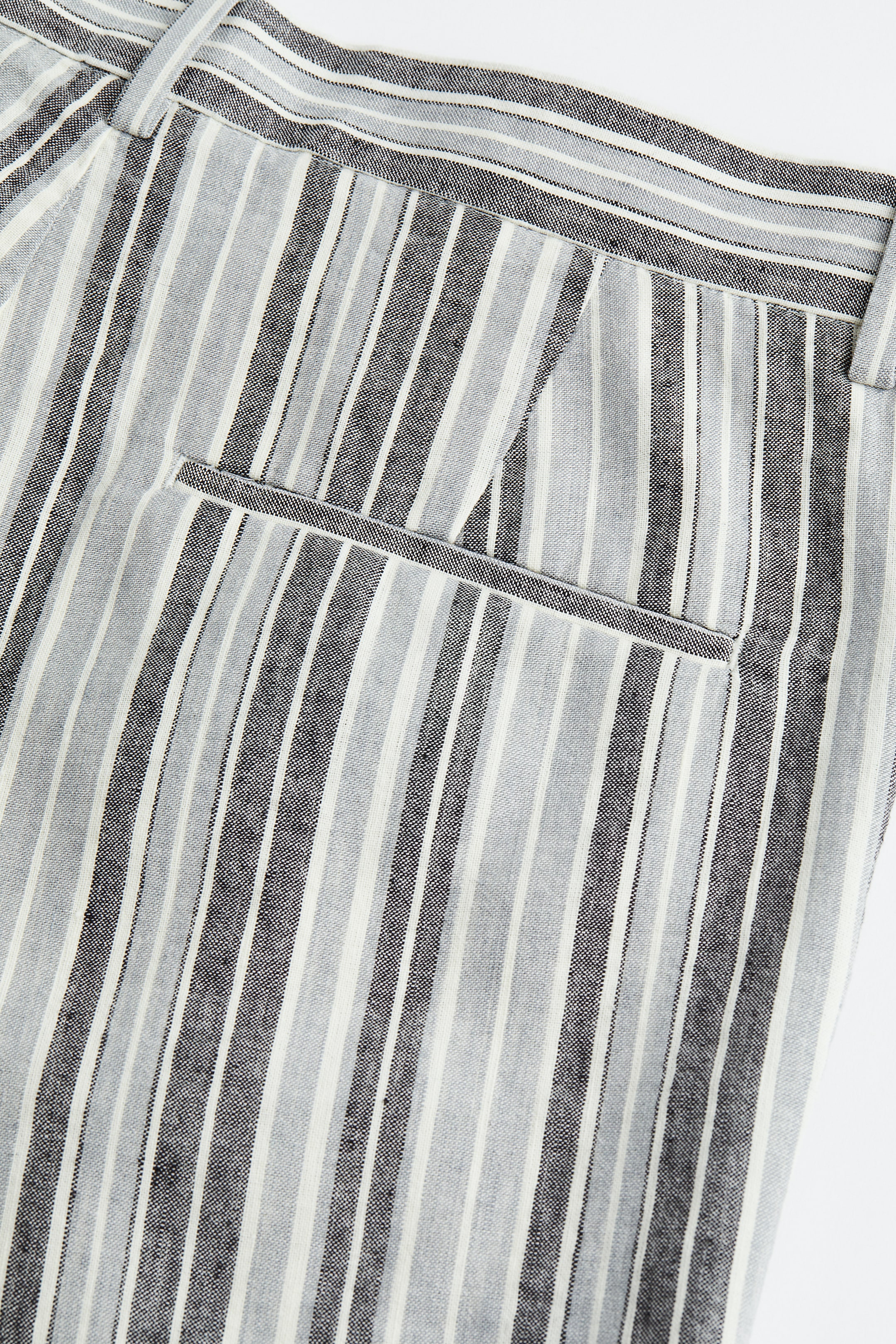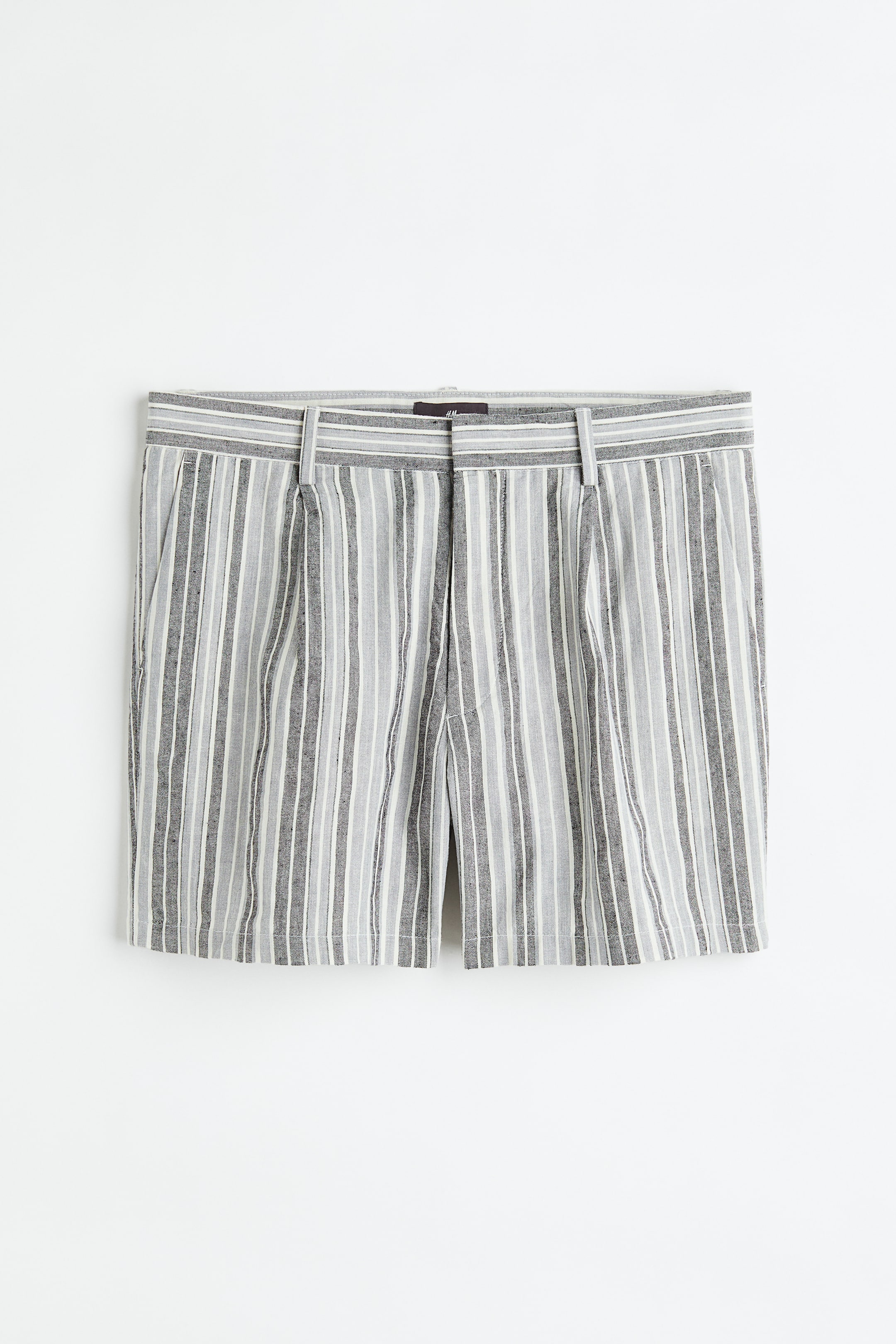 棉麻平織短褲,合身剪裁,正面有抓褶,拉鍊門襟配隱形鉤扣,有側袋和嵌線後袋。棉麻混紡布料透氣性佳,結合了棉的柔軟性與亞麻的耐用性,打造出美麗質感和完美垂墜感。