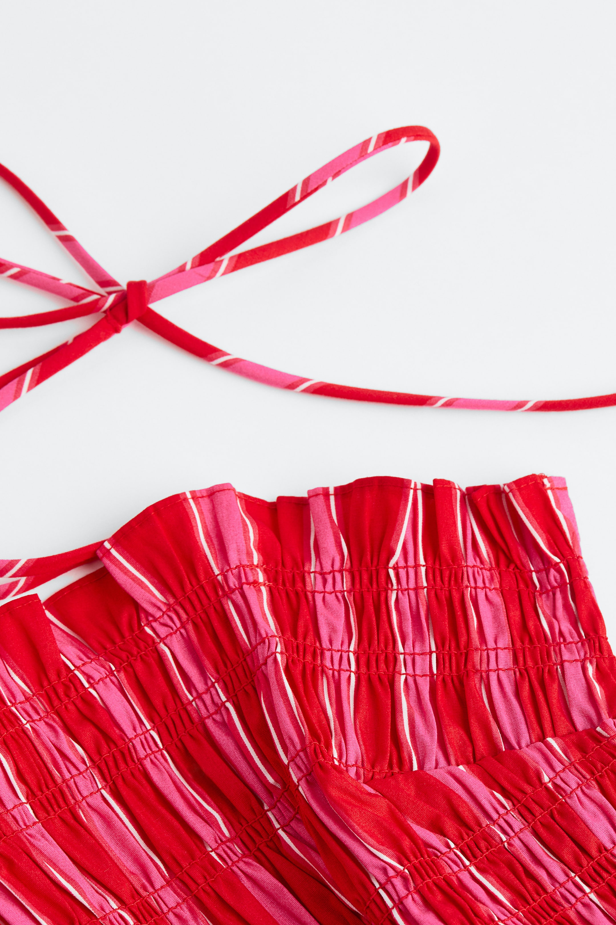 短版縮褶上衣,棉質平織布料,方領,上綁式細肩帶,上部和下襬有荷葉飾邊。