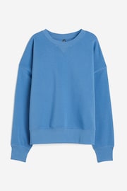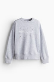 加大碼汗衫布料上衣,柔軟刷毛內裡,印有圖案,低垂肩長袖,羅紋圓領、袖口和下襬。