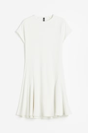 柔軟平紋短洋裝,圓領有窄飾邊,短拼接袖,合身胸衣。傘狀裙襬有三角褶,可增加蓬度。