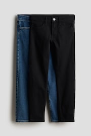 丹寧牛仔褲,髖部、大腿和腿部為貼身剪裁,可調式鬆緊帶腰圍,讓腰部完美貼合。拉鍊門襟配鈕扣,有假前袋和開口式後袋。