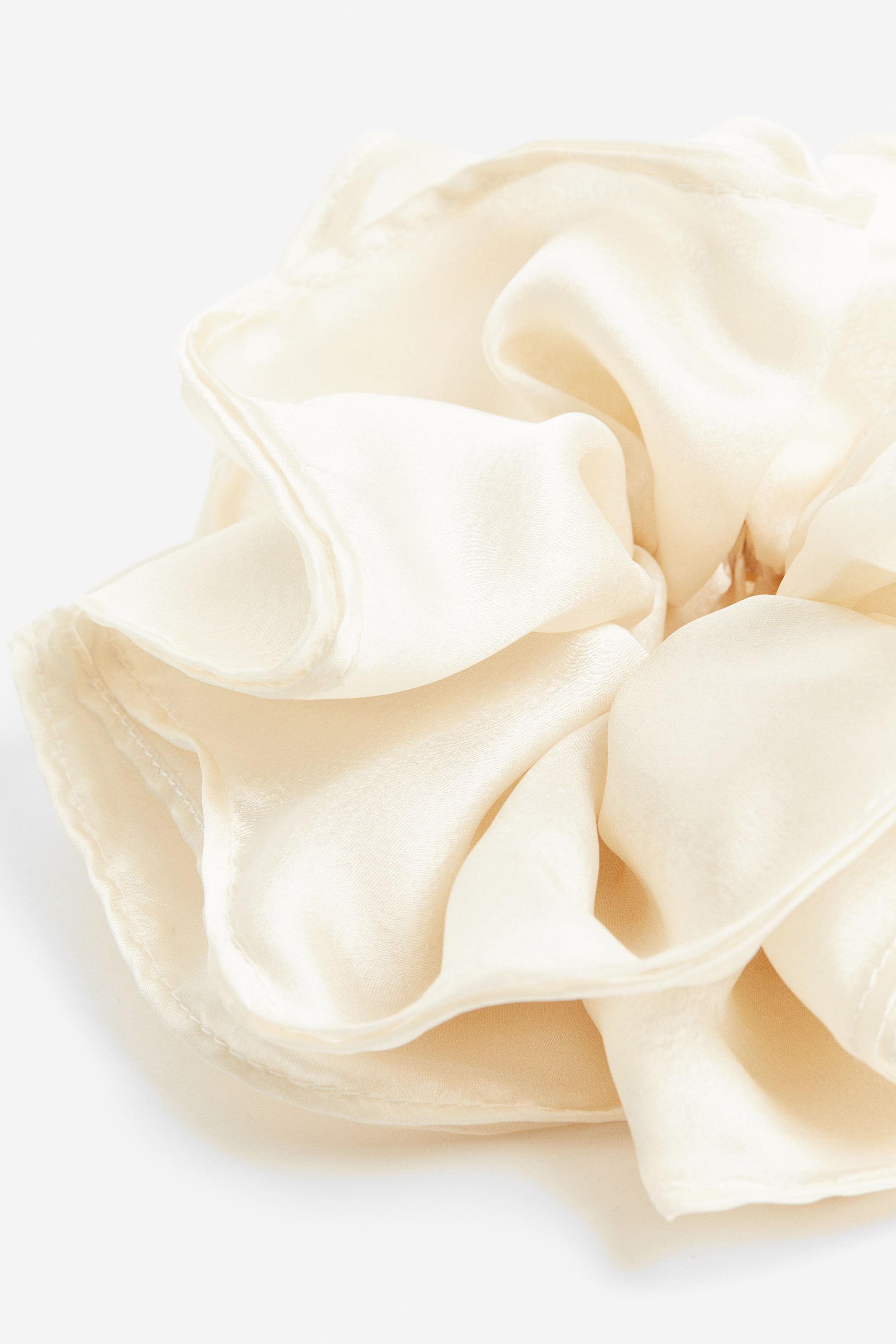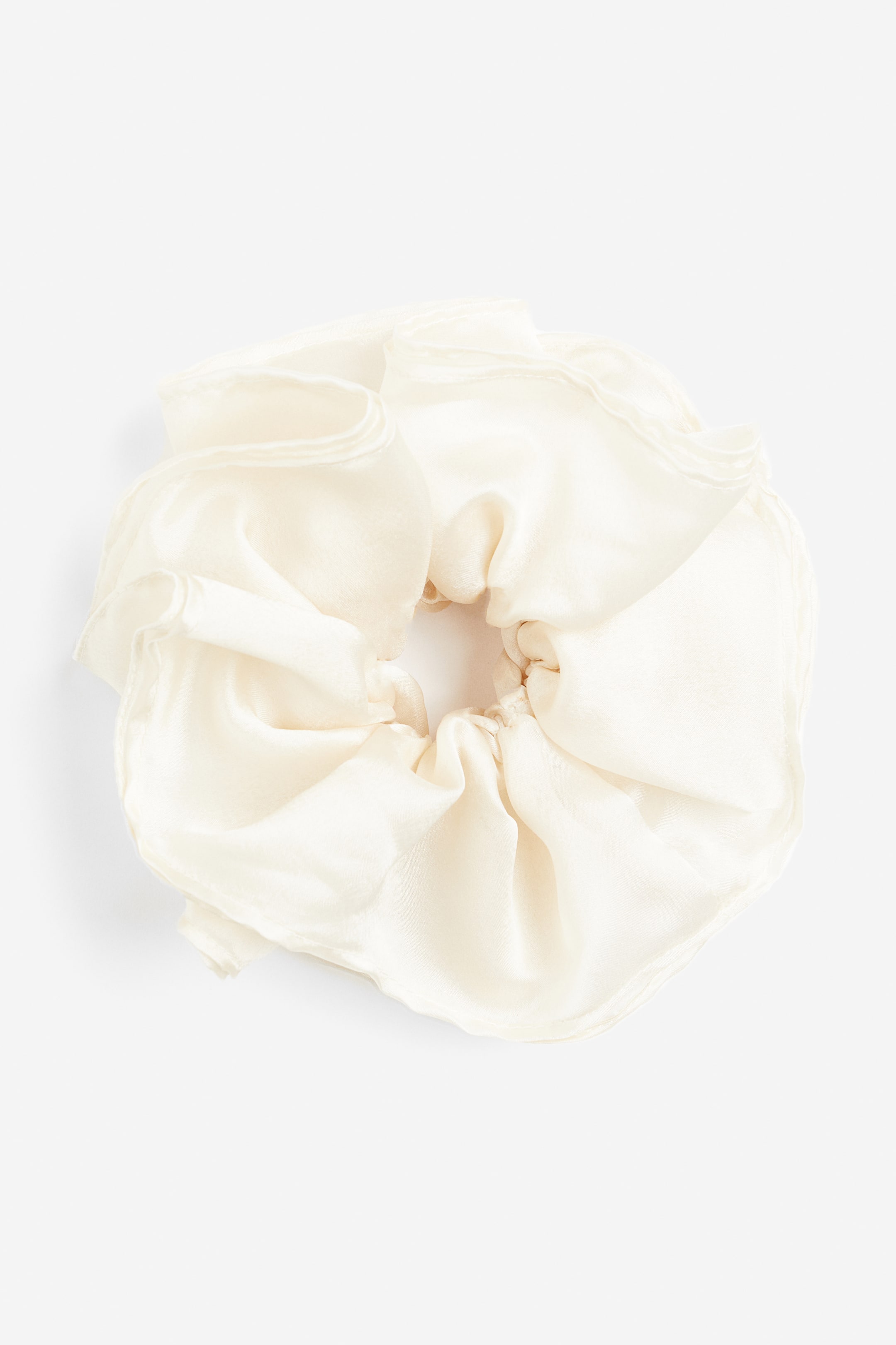 Frilled scrunchie in sheer fabric with elastics on the inside.