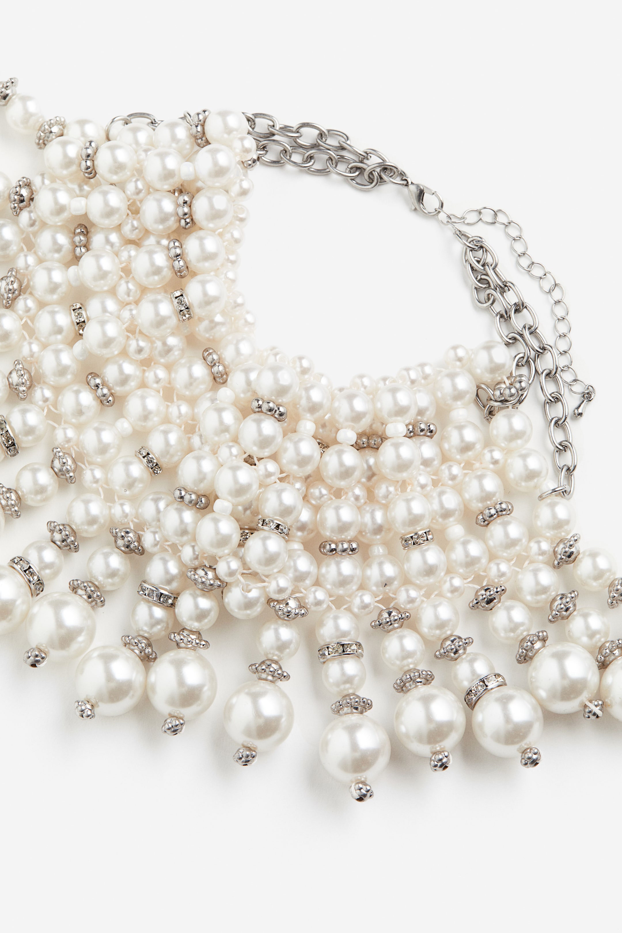 金屬鏈短項鍊,由多種尺寸和形狀的珠飾串成。長度可調,配水滴扣。