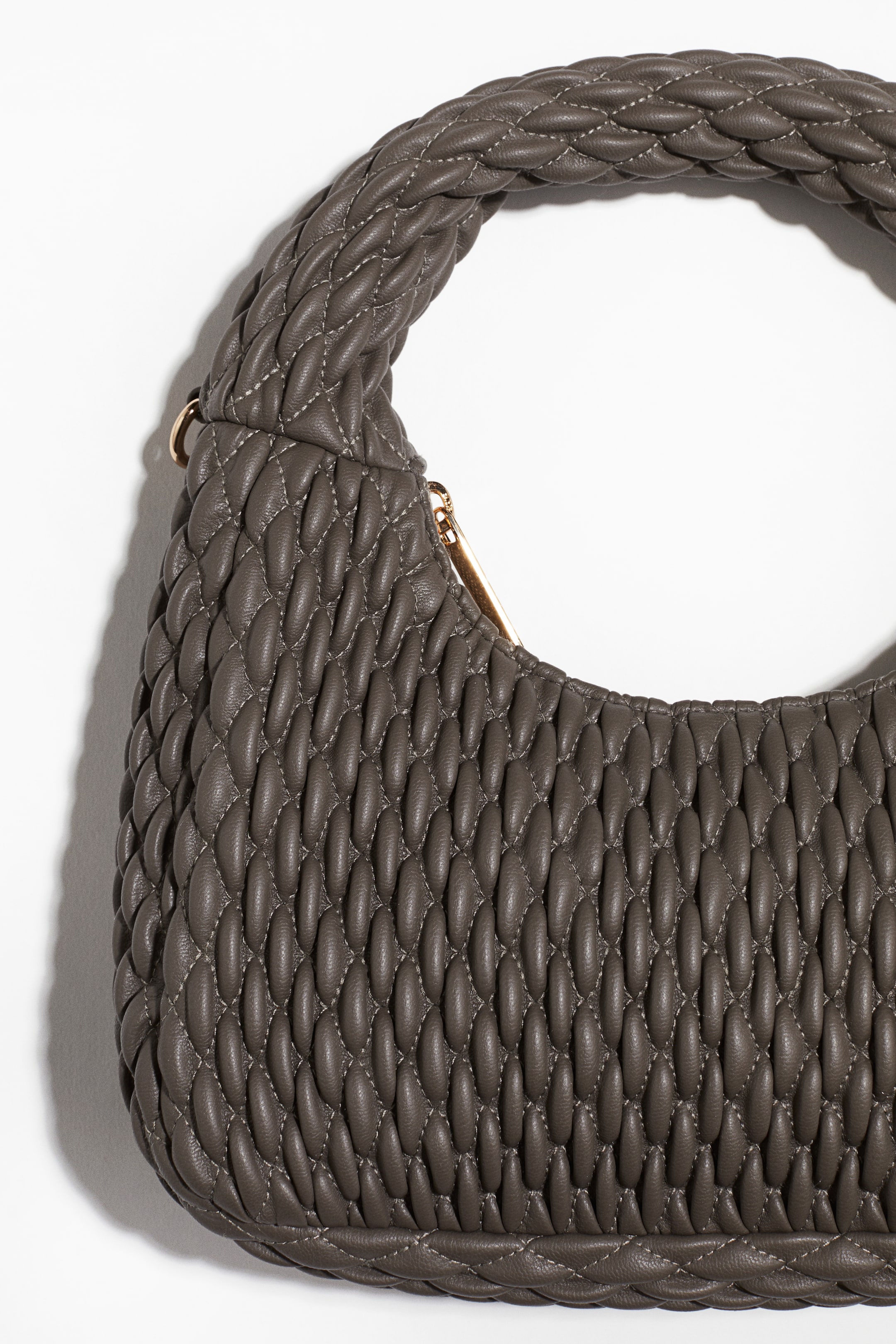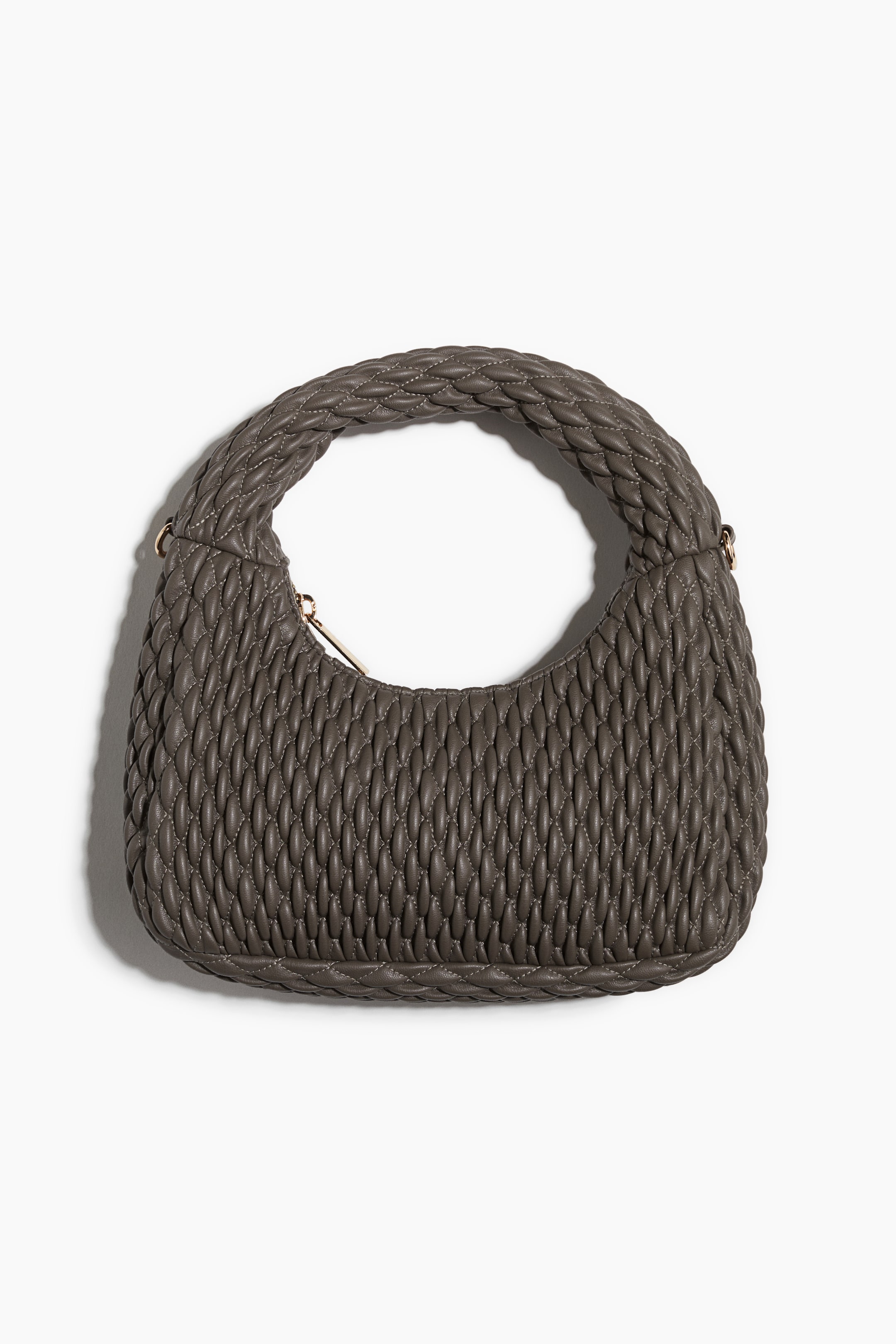 車棉斜背包,塗層布料,上部有粗提把,包口有拉鍊,可拆式細背帶。有內裡。深6公分,高16公分,寬23公分。